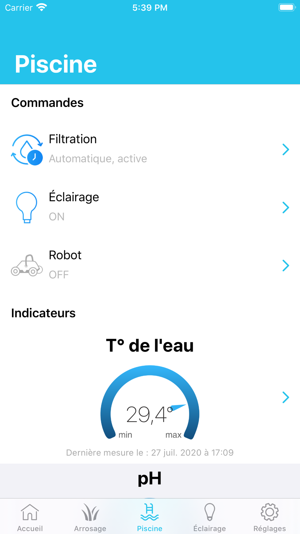 suivre en temps réel la qualité de votre eau de baignade (chlore, pH, température…)