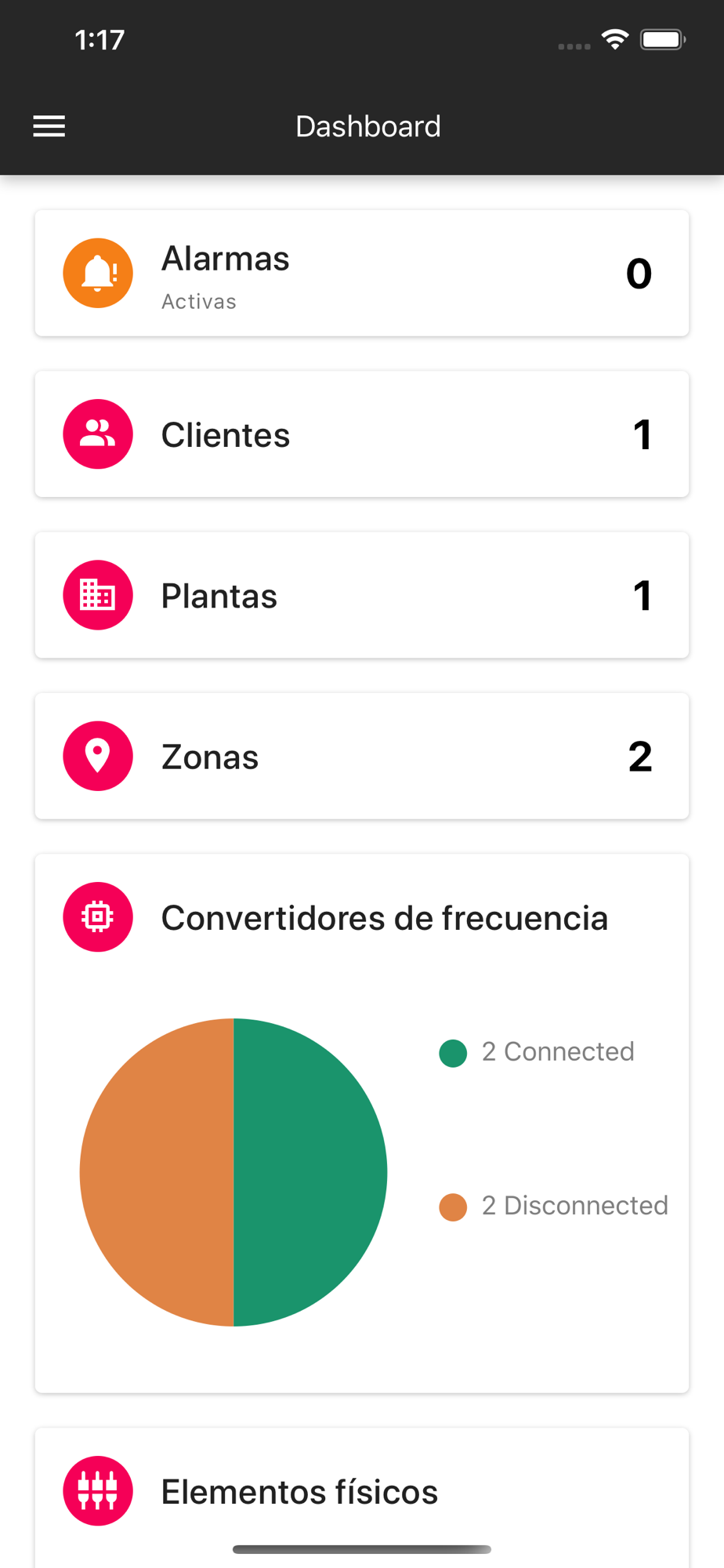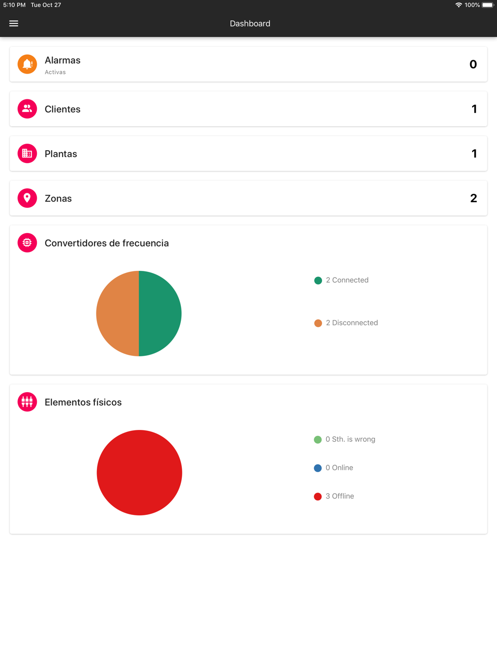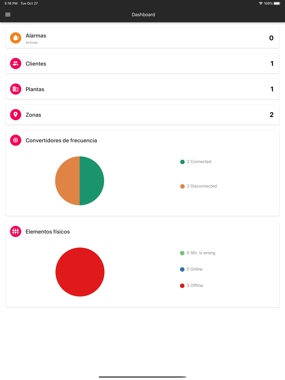 Con la instalación de nuestro hardware de comunicaciones, la aplicación puede realizar la monitorización en tiempo real del estado de los variadores de frecuencia y de cualquier equipo con opciones de comunicación (PLCs de primeras marcas, equipos con Modbus RTU, Modbus TCP, Ethernet,…), incluyendo alarmas, datalogging, avisos en tiempo real, etc.