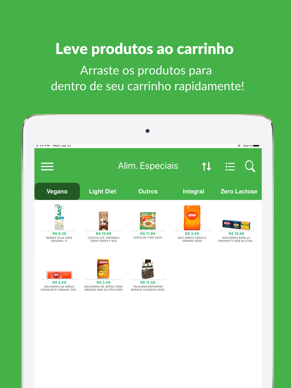 • Adicionar produtos no seu carrinho com um simples tocar e arrastar.