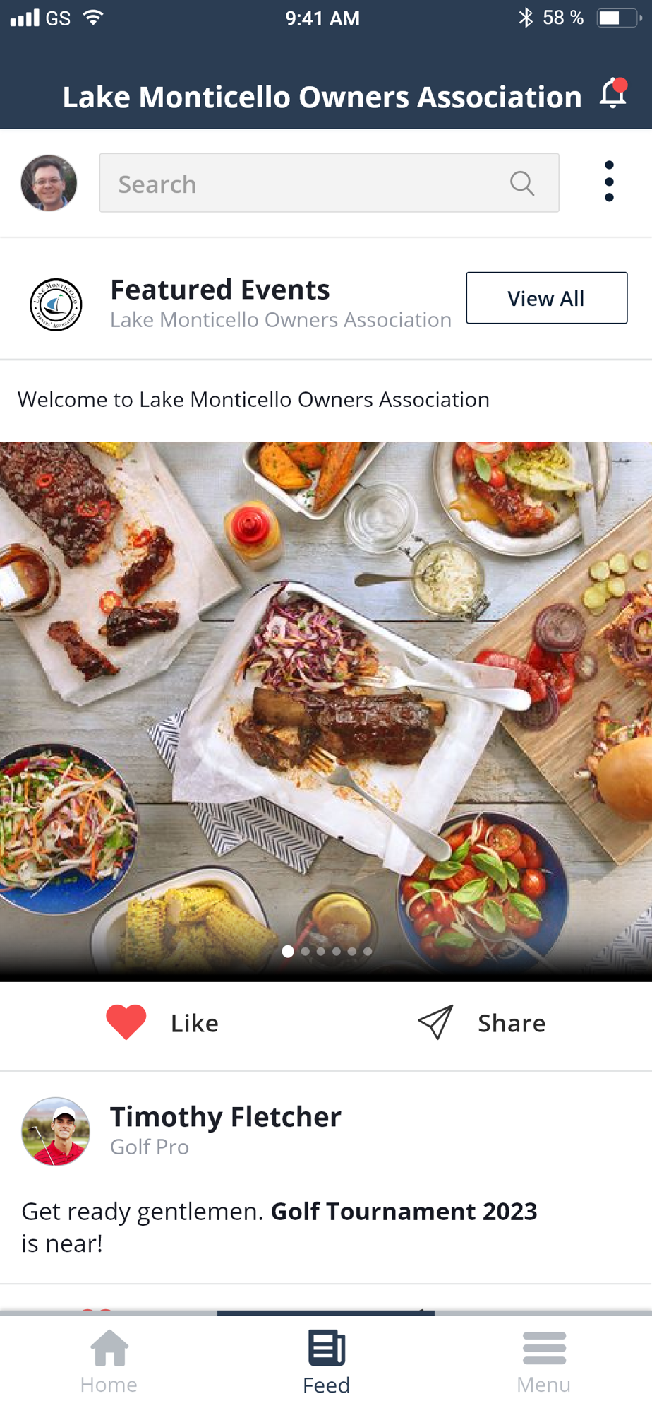 Lake Monticello App can monitor statements, explore the directory, stay updated on club events, make reservations, and more.