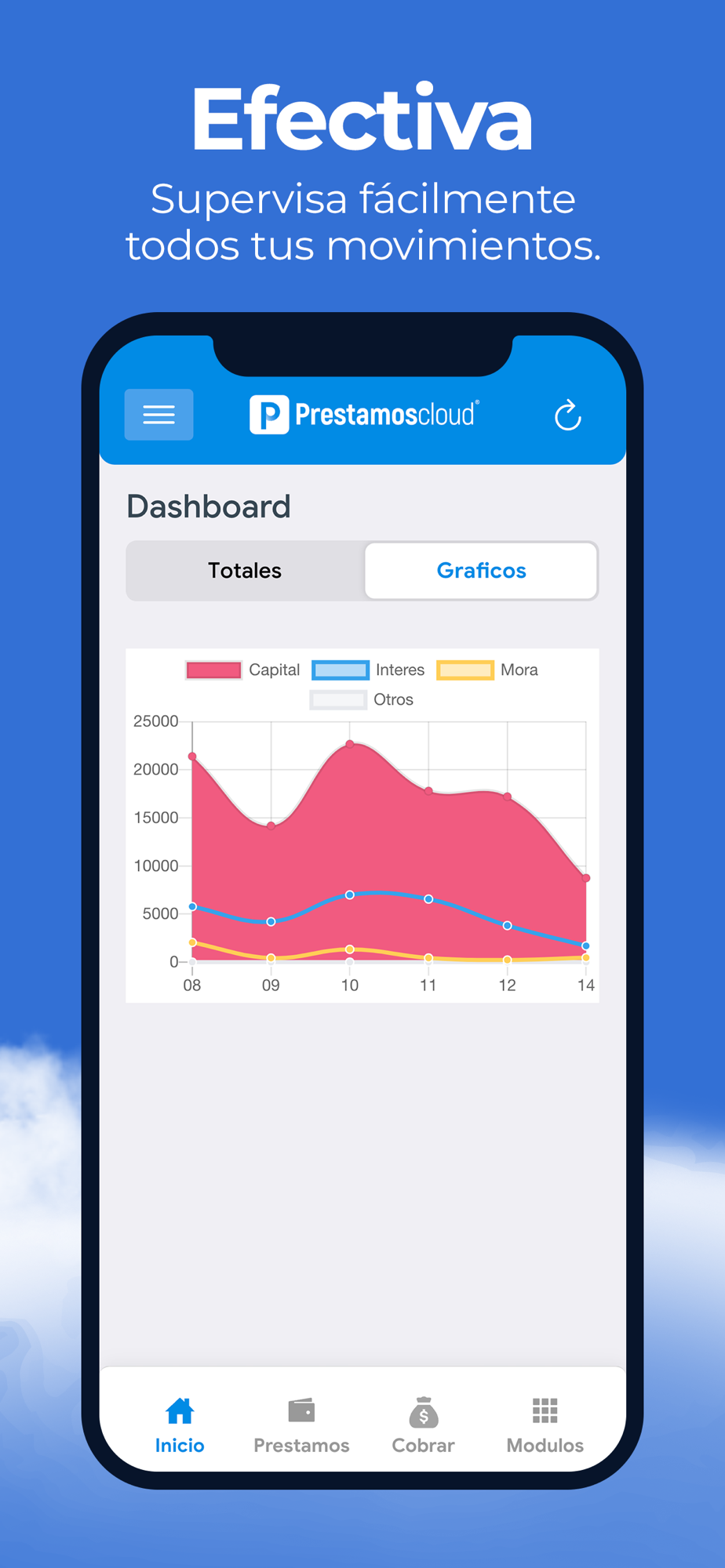 Préstamos CLOUD es una herramienta que dispone de un manejo total de tus prestamos ó transacciones, manejo de productos, manejo de clientes, gastos, control de intereses, calculo de moras entre otros. Especial para las empresas de micro-crédito.