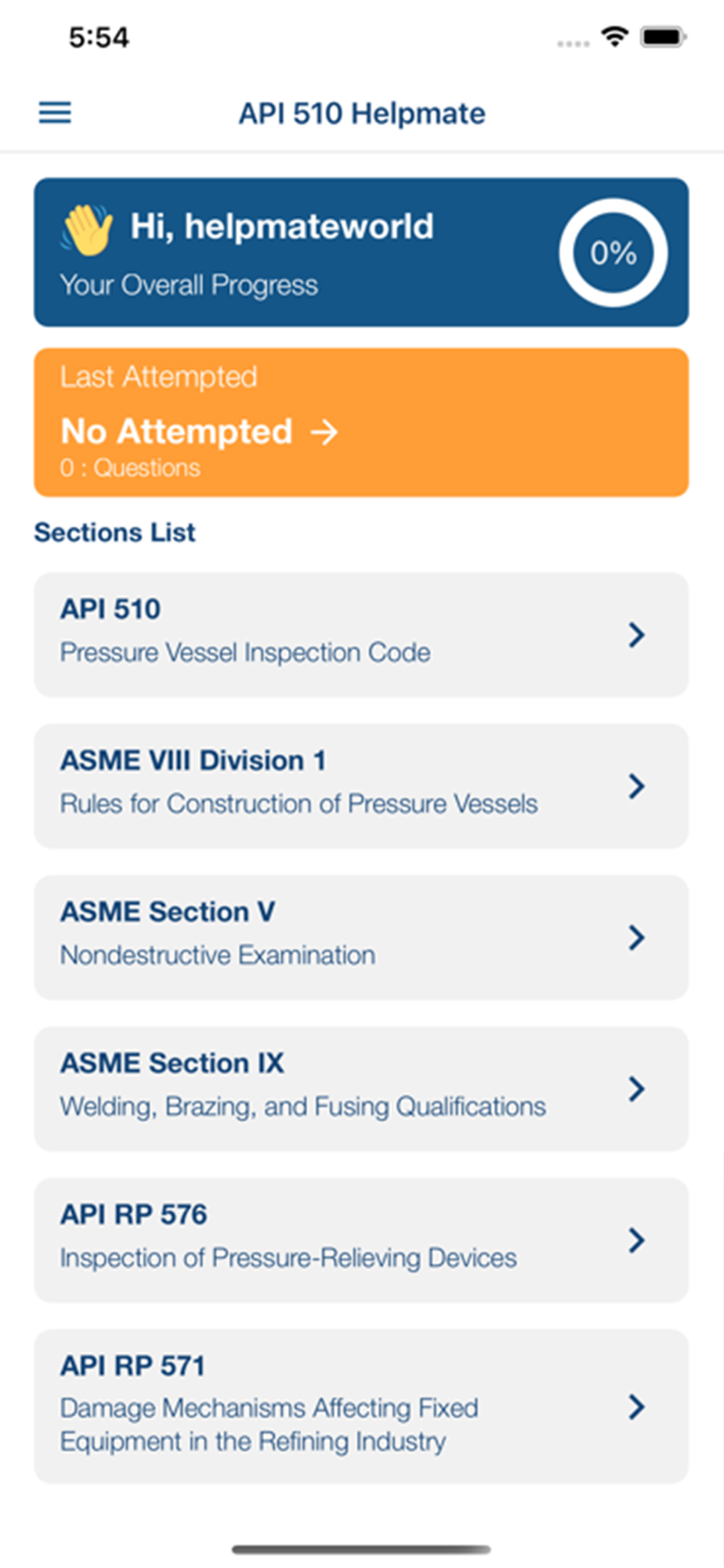 With “API 510 HelpMate” you will improve your skills through systematic learning and strengthening your overall job performance. With “API 510 HelpMate” you will be able to prepare yourself for two-part exam comprised of close and open book sections, and progress on the way to become an authorized API pressure vessel inspector. Final sections of “API 510 HelpMate” can give you a real-life experience which can significantly improve your score and increase the chances of the success you are aiming for. This app is an excellent and exclusive resource for recertification of for the API 510 Pressure Vessel inspectors who need to apply for recertification every three (3) years.