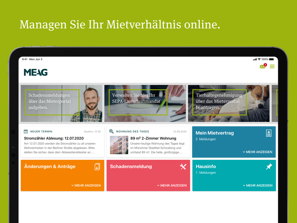 • Managen Sie Ihr Mietverhältnis gerne online: