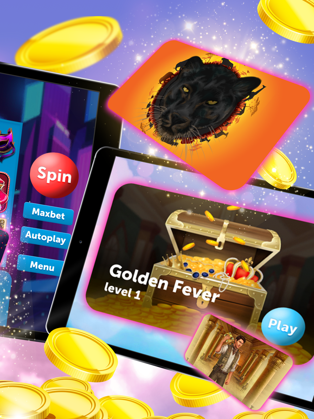 アプリにはスロットマシン用の4つのテーマがあり、1つは近日提供予定です. 新しいレベルをプレイしてアンロックしましょう! すべての新しいレベルで100コインを受け取ります.