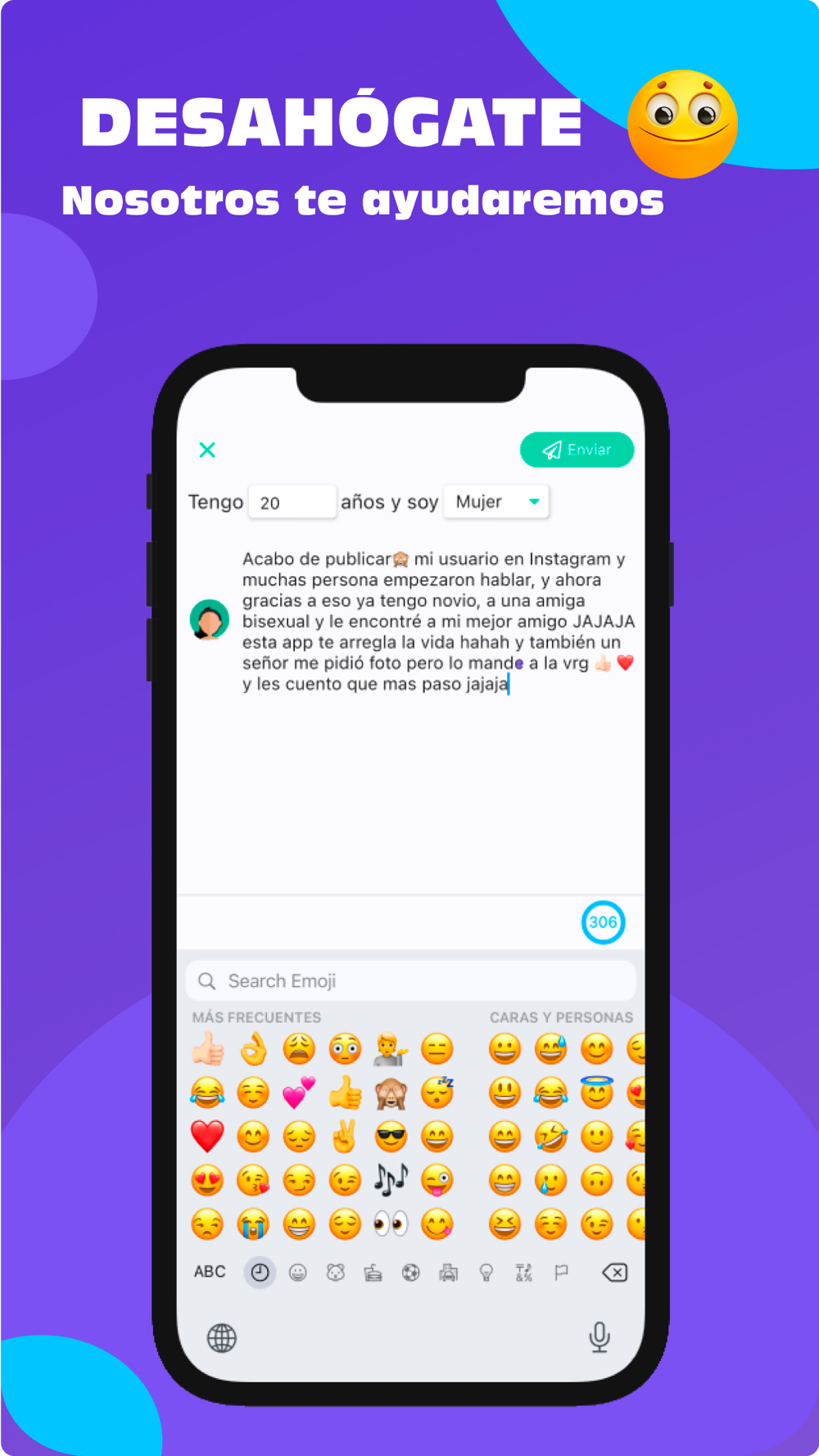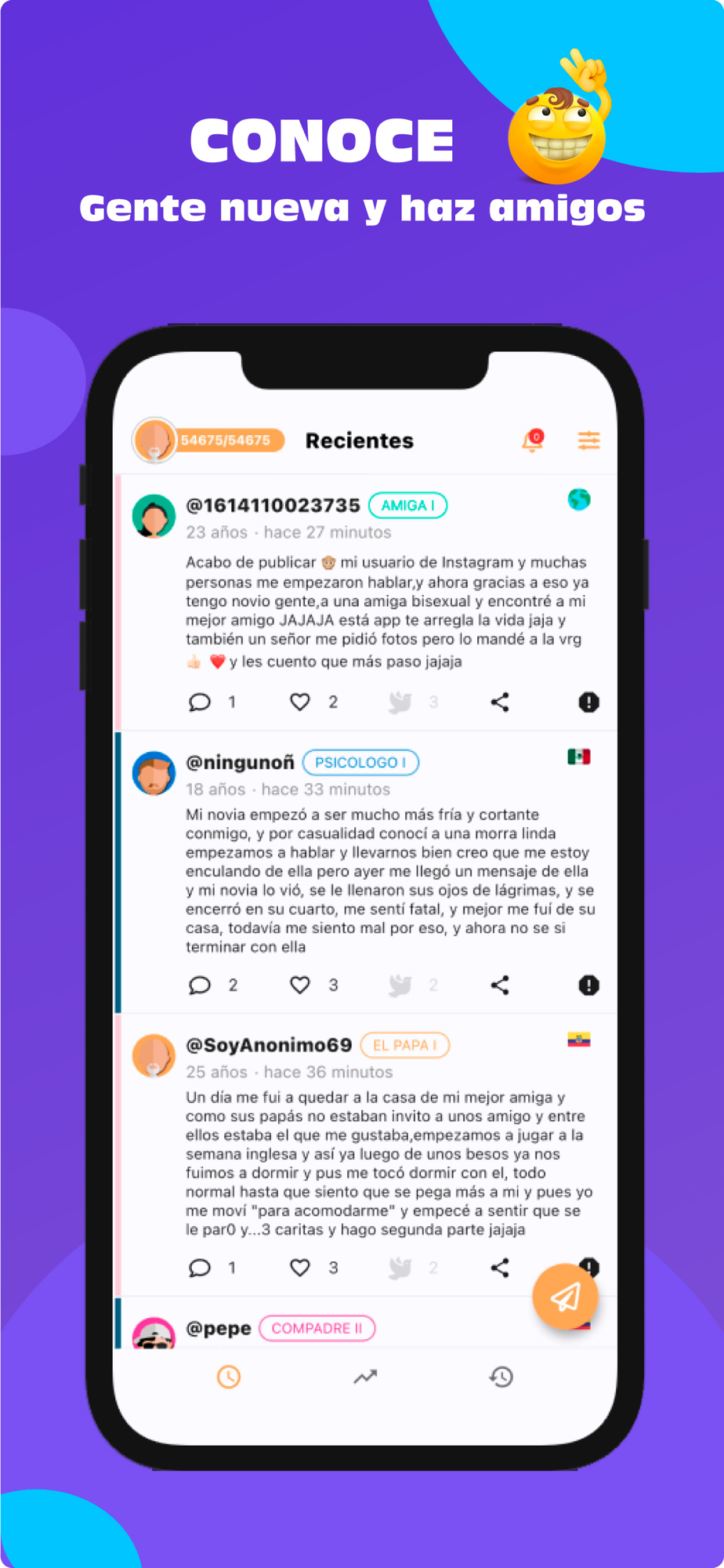 Todos los secretos y confesiones, serán completamente anónimas según las políticas. Puedes publicar tu edad, país y genero, y podrás enviar rápidamente TU SECRETO, listo para que todos los usuarios de la aplicación te puedan aconsejar.