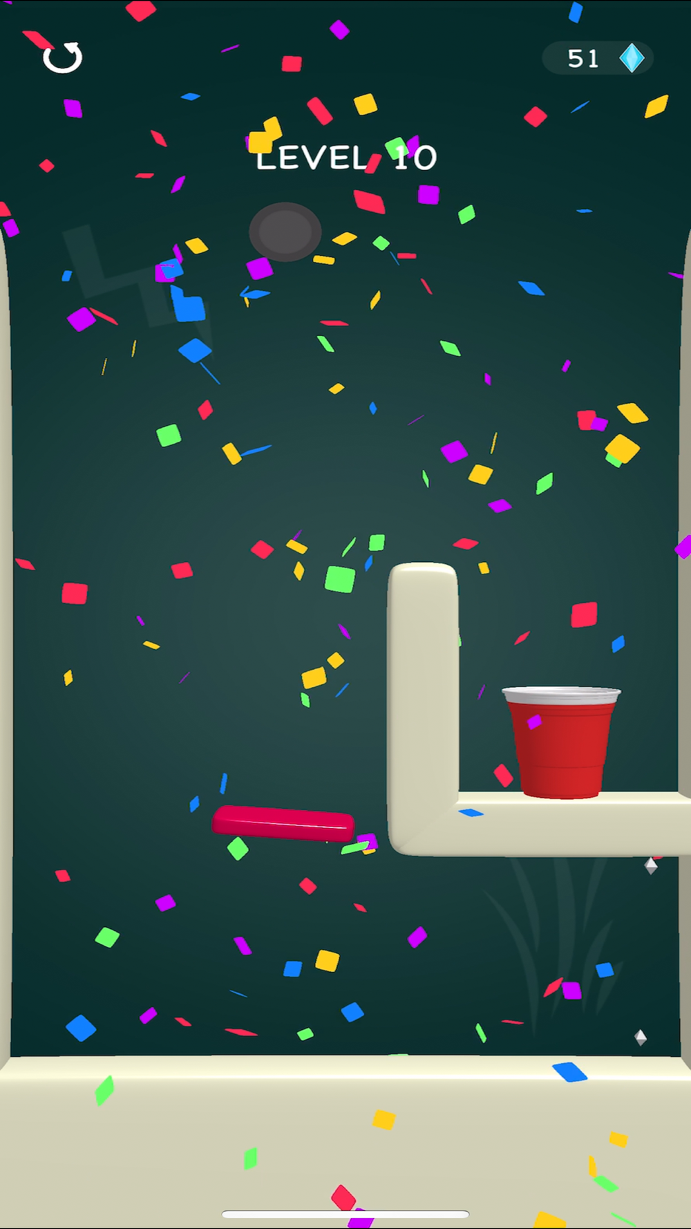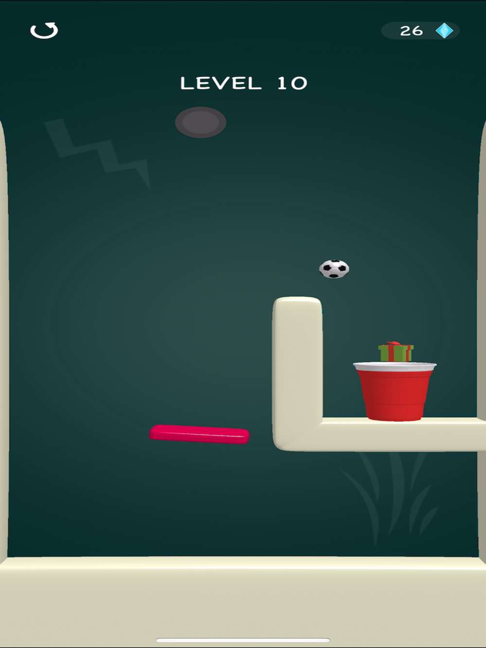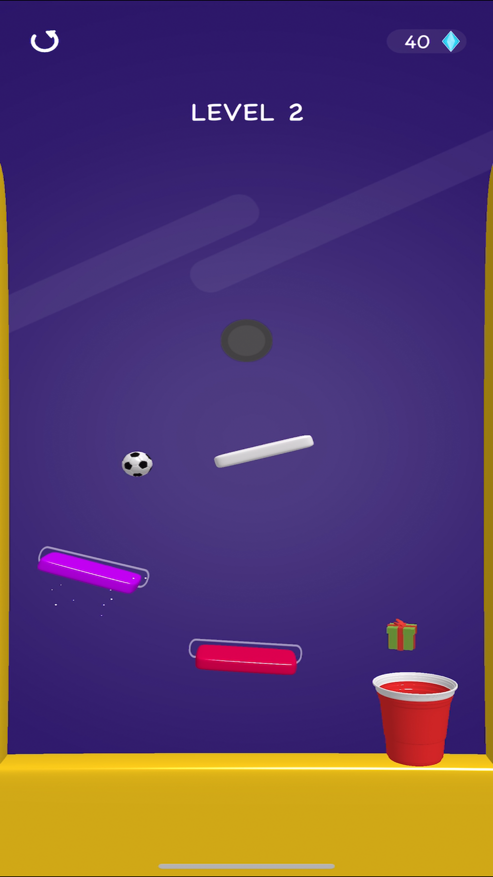 Ball is falling down. There could be different positions of the cup and some barriers between ball and cup. The main goal is to turn sticks on the screen to form the right trajectory until you drop the ball on the cup.