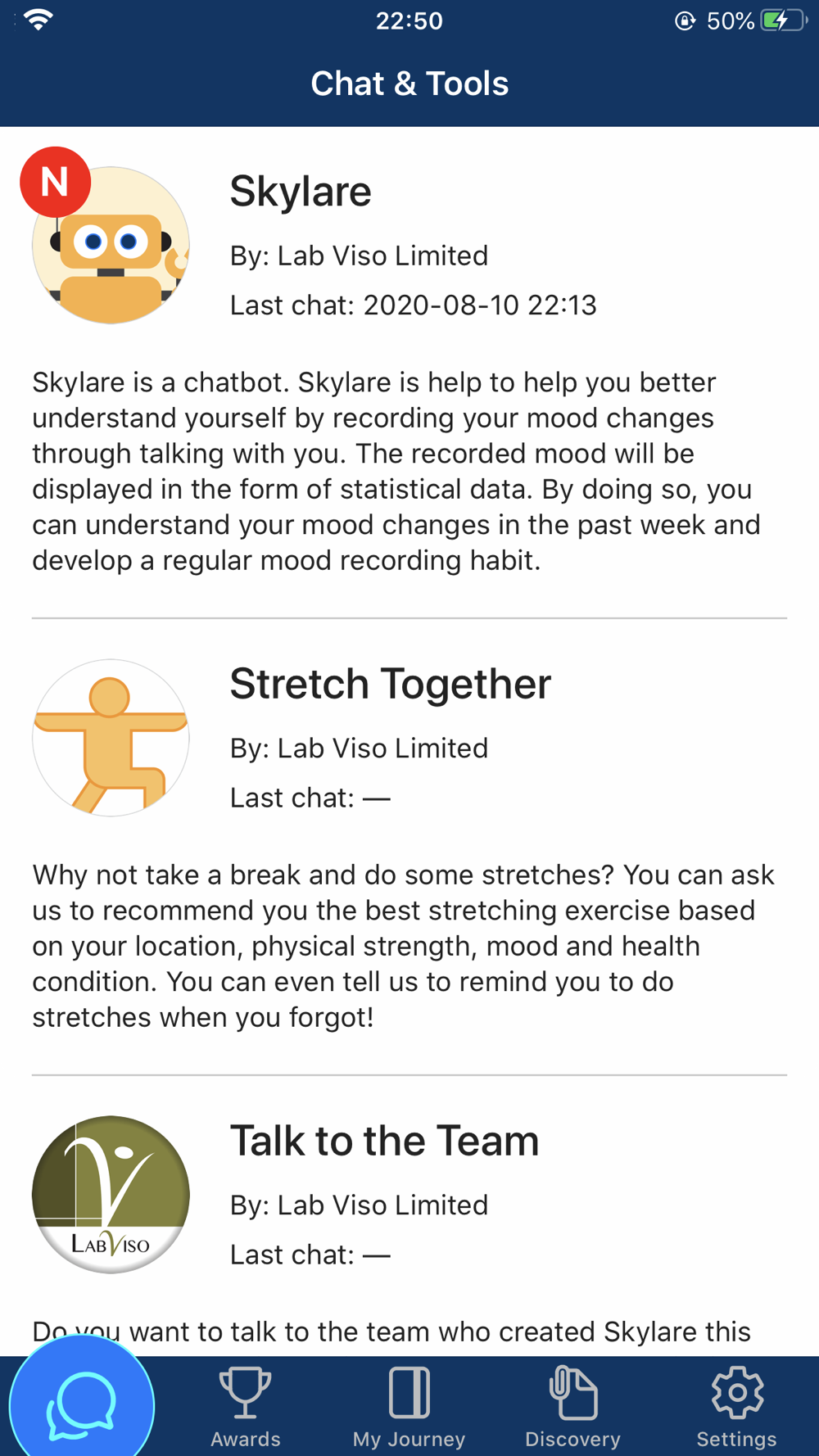 Skylare shows your emotion history in clear and insightful graphics, helping to see your health trends.