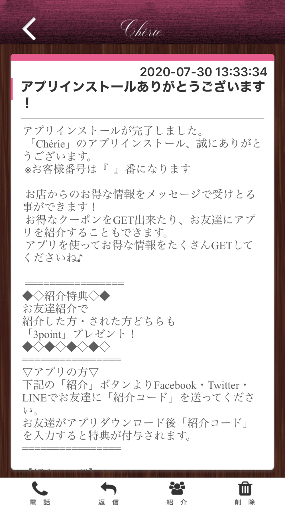 このアプリでは、Cherieの最新情報の受け取りや便利な機能を使う事ができます。