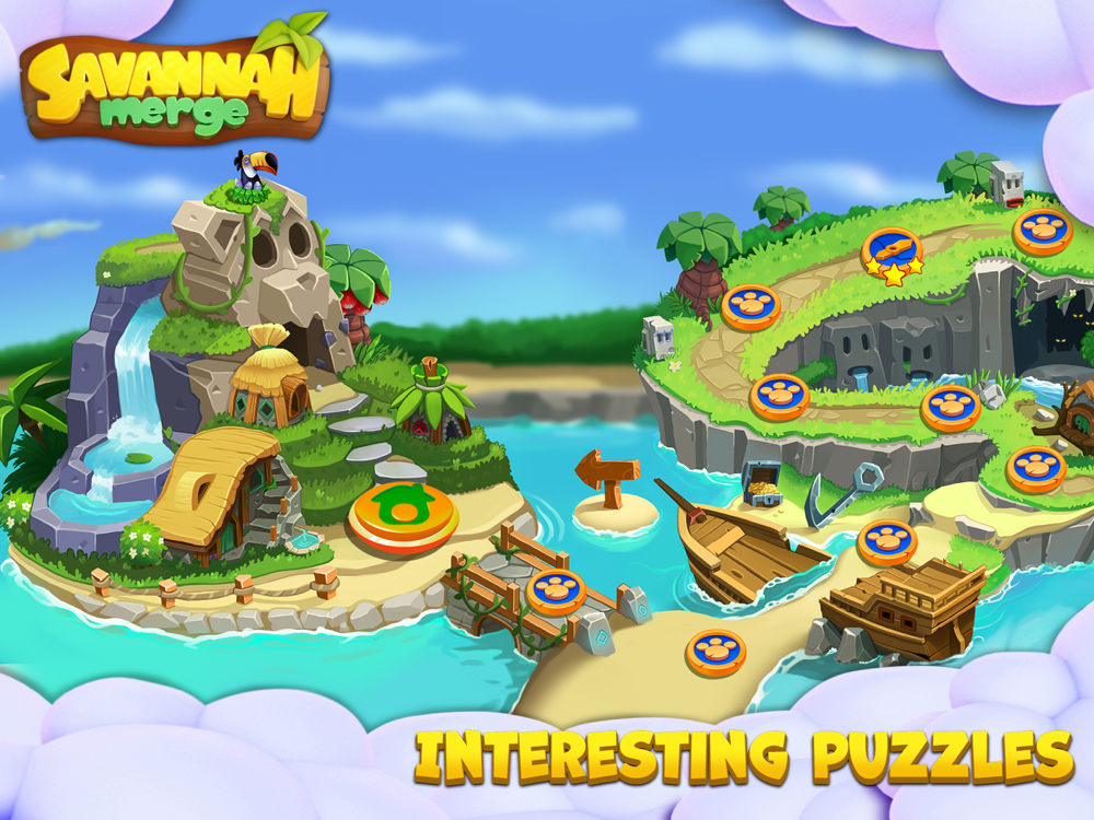 Travel the savannah and build your camp by gathering resources and building caves, ore mines and gold storage. Complete levels, develop your camp and get new and interesting animals. Meerkats, rhinos, zebras and lions are just some of the animals that will help you clean up the savannah and make it more beautiful than ever before! Merge items and animals, level them up, clean up the whole land and revive the legend of the Savannah!