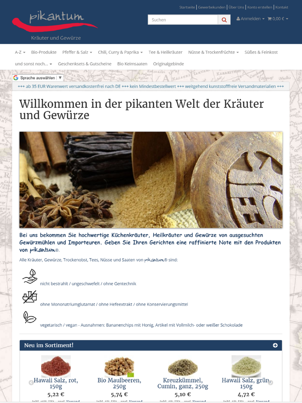 Bei uns bekommen Sie hochwertige Küchenkräuter, Heilkräuter und Gewürze von ausgesuchten Gewürzmühlen und Importeuren. Geben Sie Ihren Gerichten eine raffinierte Note mit den Produkten von pikantum®.
