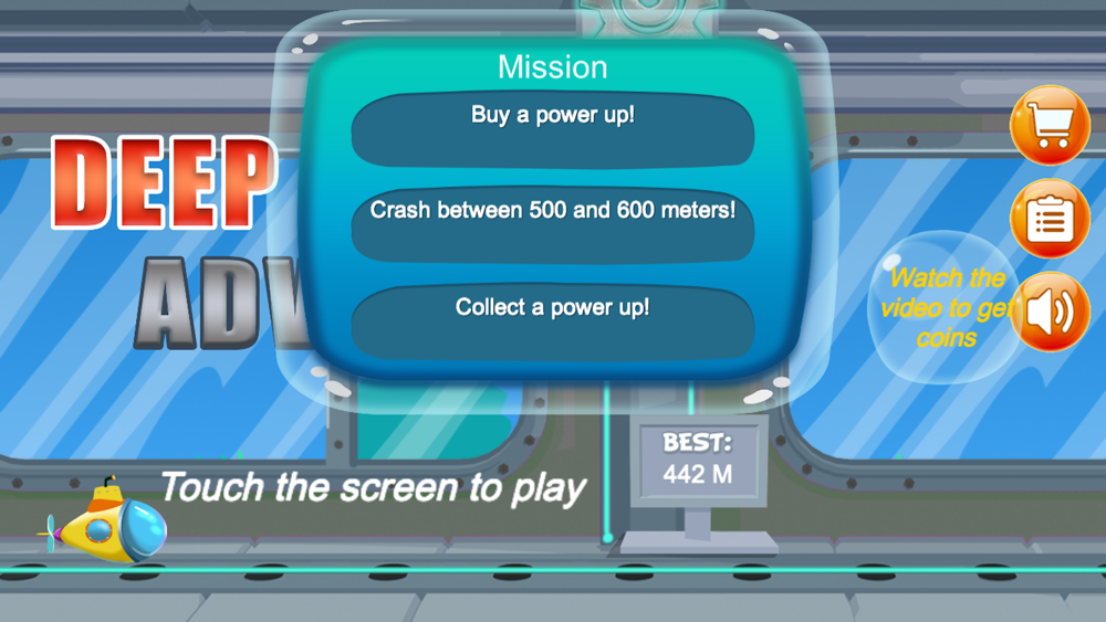 -Click on the screen accurately and quickly to let your small submarine dive to avoid all kinds of attacks