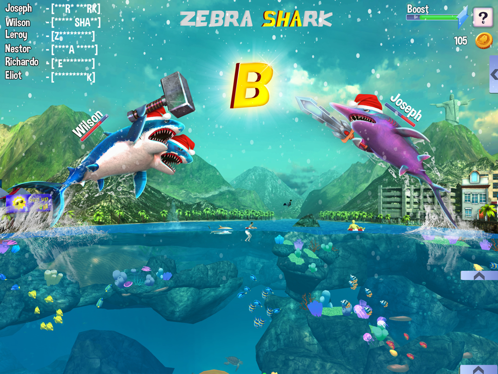 欢迎来到水下鲨鱼游戏的不同世界。 在游戏中寻找海滩,水下鱼类,动物和人类的目标,以生存并赚取金币。 可以在海洋中吃掉100多种松脆可口的危险生物,例如小鲨鱼,水母,鱼类等,以增强能量。这款水下模拟游戏具有令人惊叹的品质,3D图形和超酷的音效,会让您发疯。让双头鲨鱼穿着怪异的服装打扮起来,比如各种帽子,武器,耳机,锤子,斧头,魔杖和其他更多令人兴奋的装饰品。尝试一下终结者鲨鱼,它可以变成小小的鲨鱼来吃它的猎物。 嘿! 这些模拟器鲨鱼具有巨大,疯狂,怪异的力量,而且比等待攻击它们的猎物还要酷。在水下共享和收集所有鲨鱼,成为统治水下海洋的国王。 这是最好的鲨鱼游戏之一。 探索看不见的鲨鱼世界及其在水下的生活。