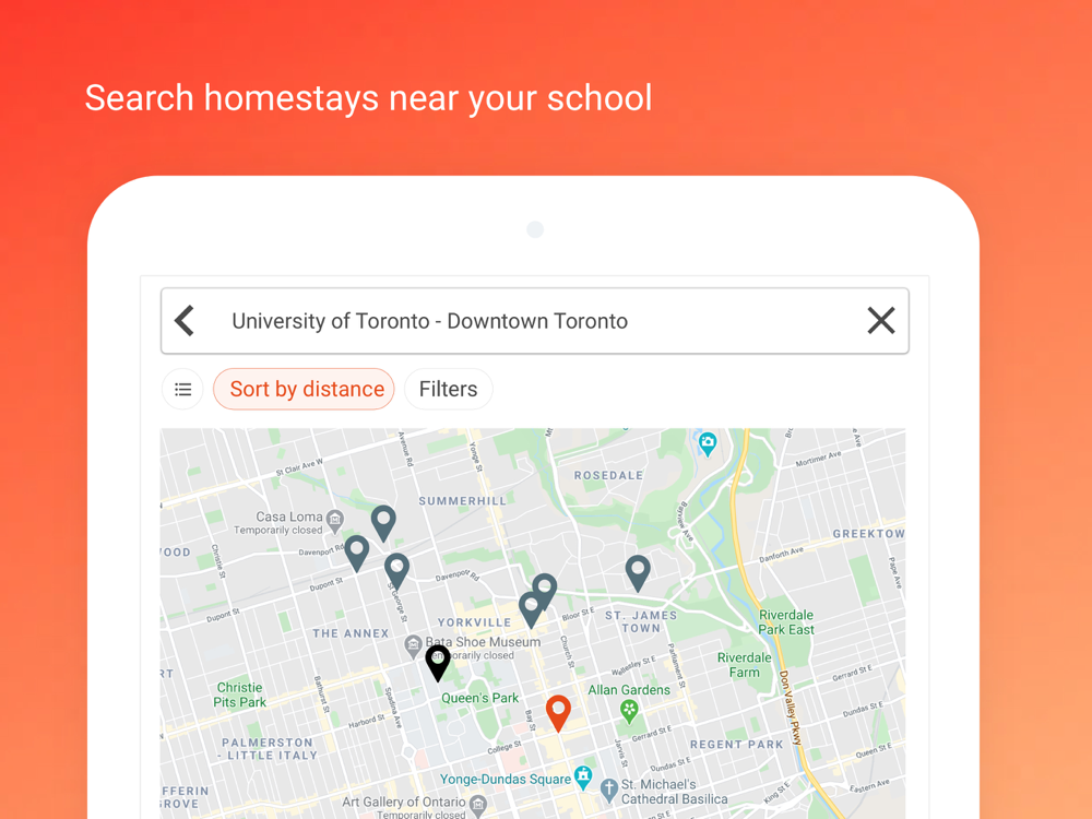 - Send our staff to interview hosts and inspect the property in person and run background checks on the homestay hosts. We are confident to showcase and promote such listings to students