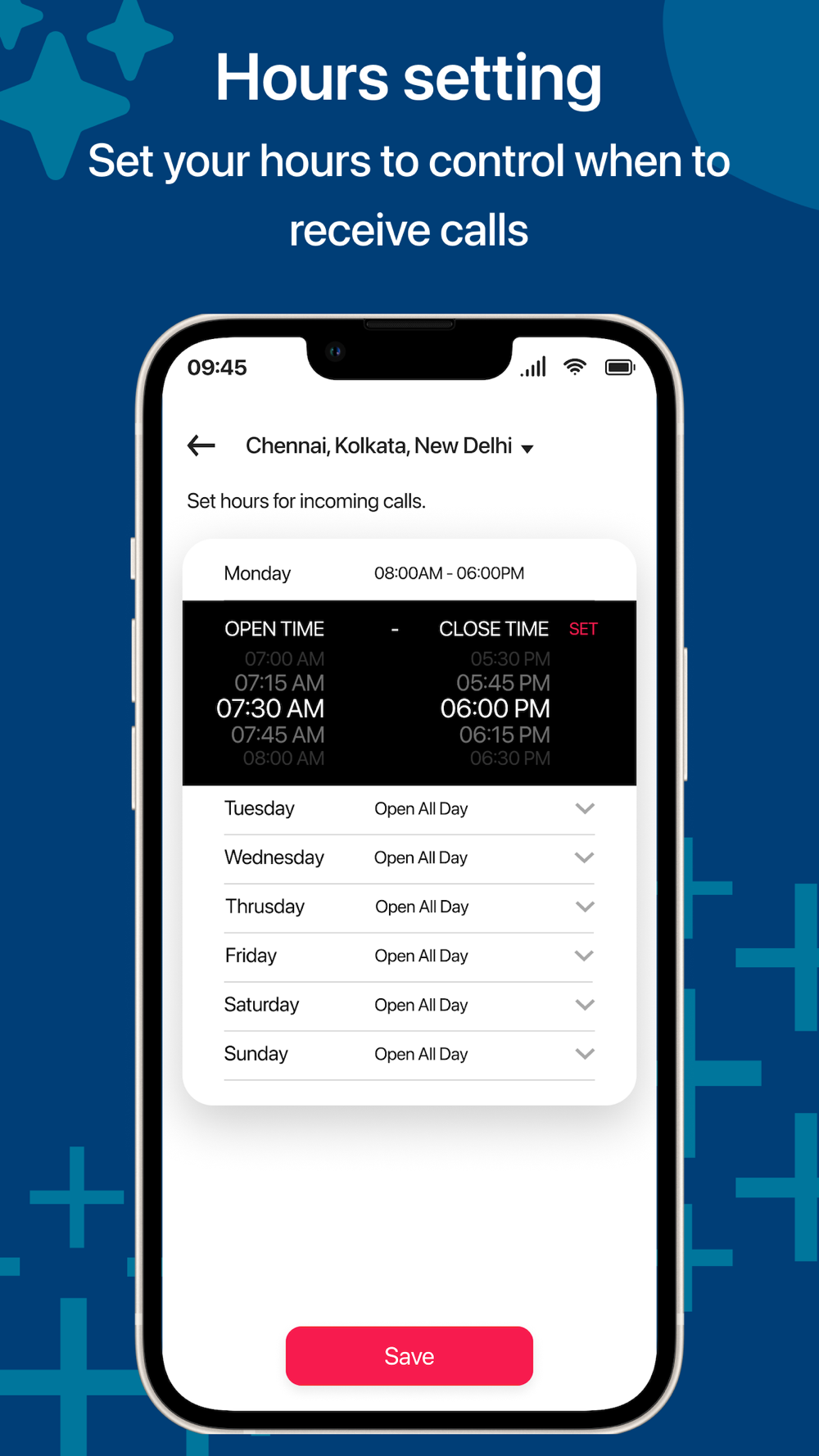 * Business Hours - Handle your calls and messages using the business hours feature.
