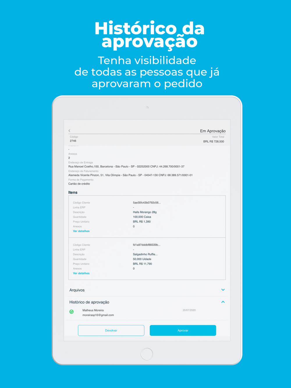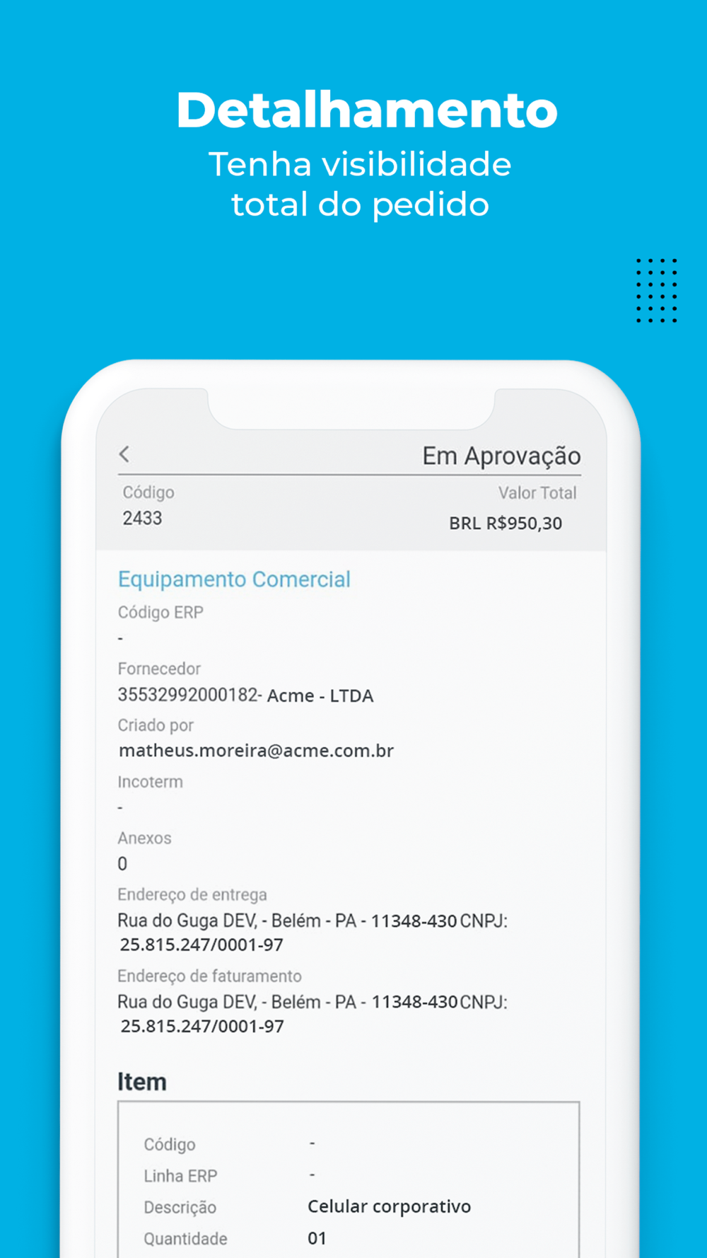 O NimbiAprova permite ao aprovador das requisições e/ou pedidos visualizarem seus documentos em aprovação, verem os detalhes e fazer download dos anexos. Podendo assim aumentar seu entendimento sobre cada documento e poder tomar a decisão mais acertada sobre eles.