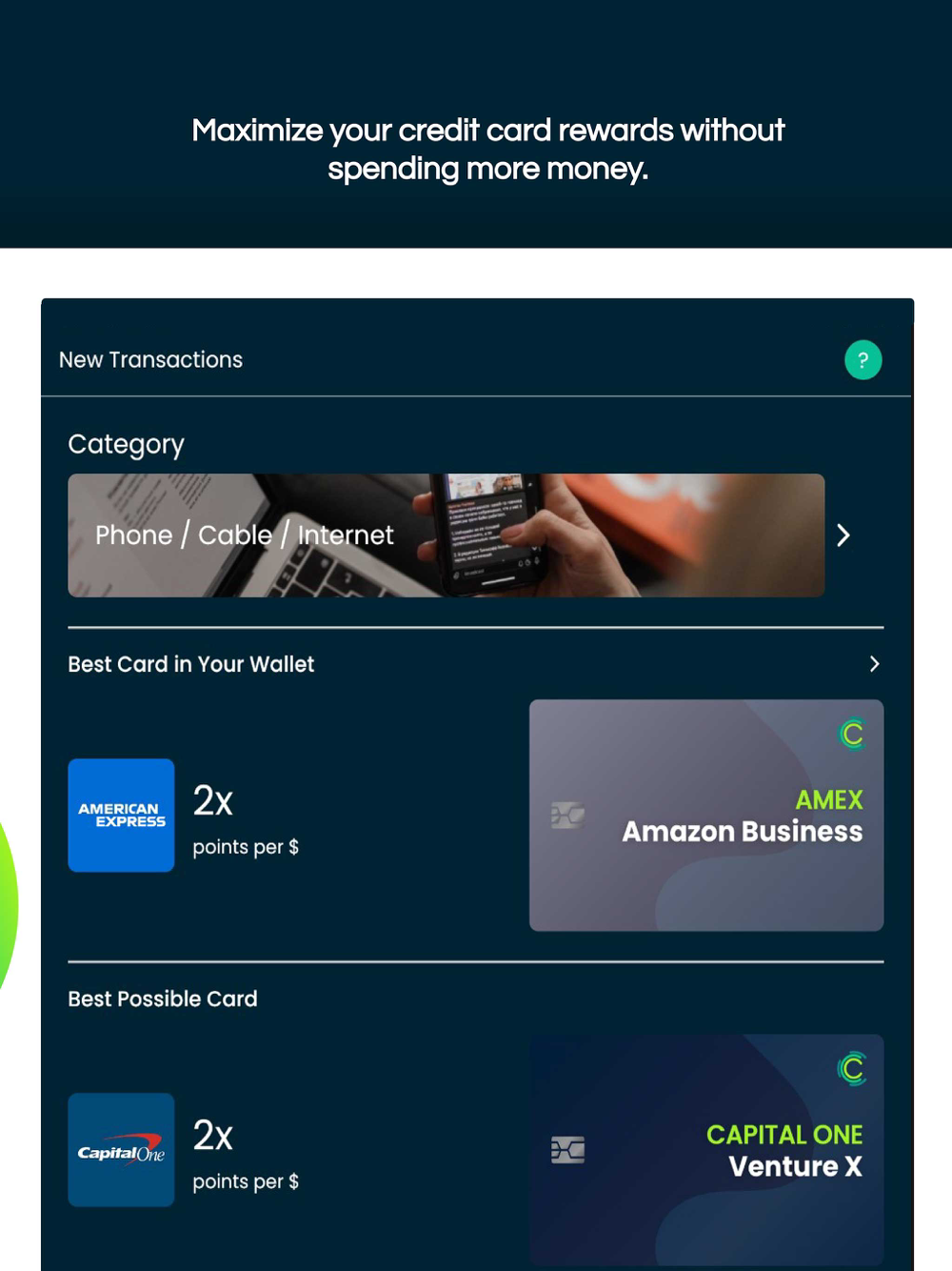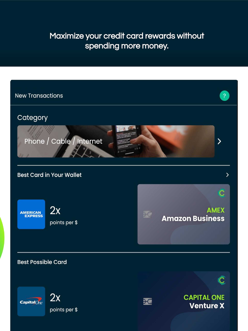 Use the free version of Card Curator to earn more without spending more by maximizing rewards on your everyday purchases. Our free card recommendation tool helps you choose the best card in your wallet based on your location and the type of purchase you're making.