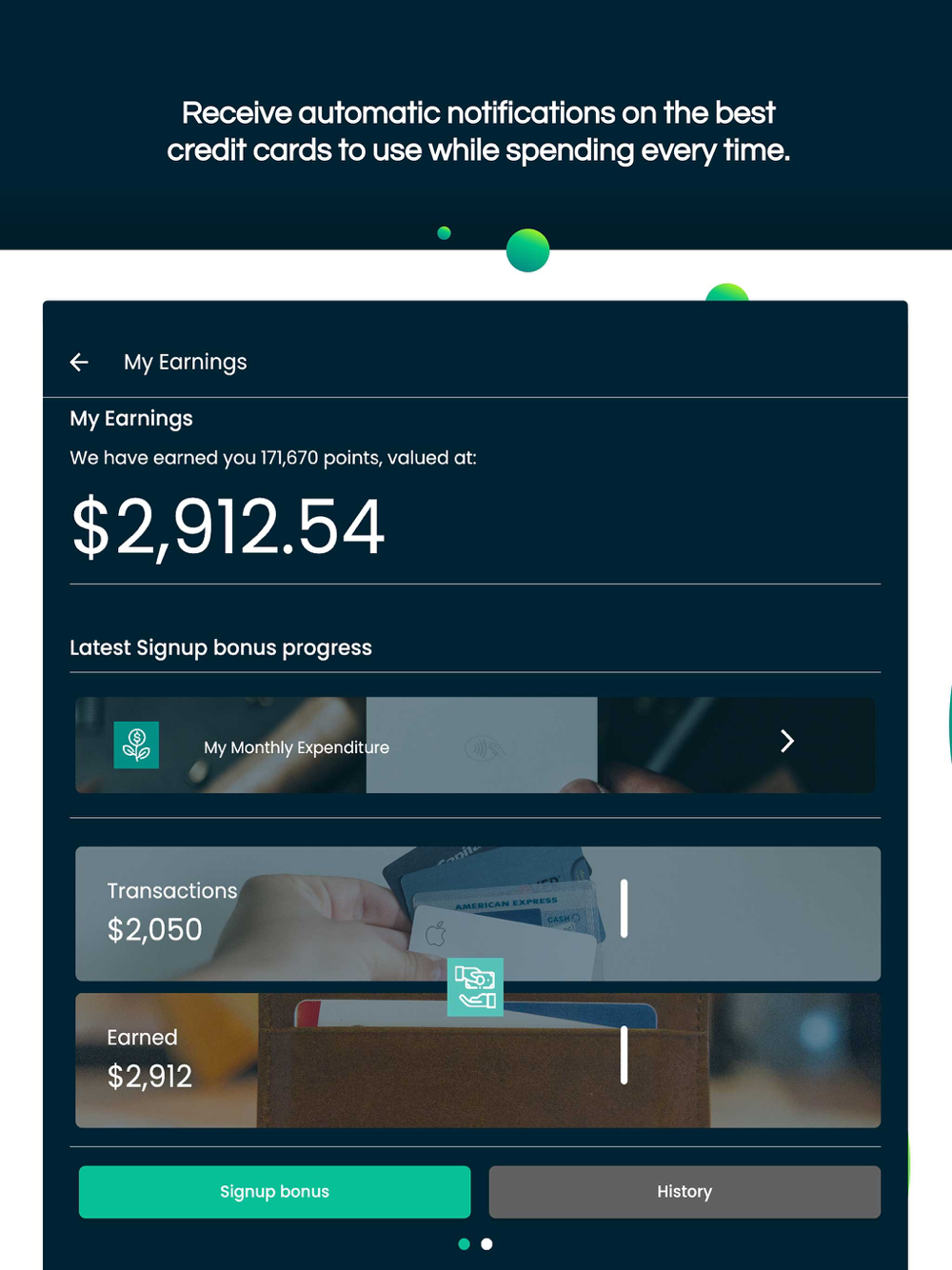 Card Curator provides real-time updates on your rewards earnings and your progress towards your goals.