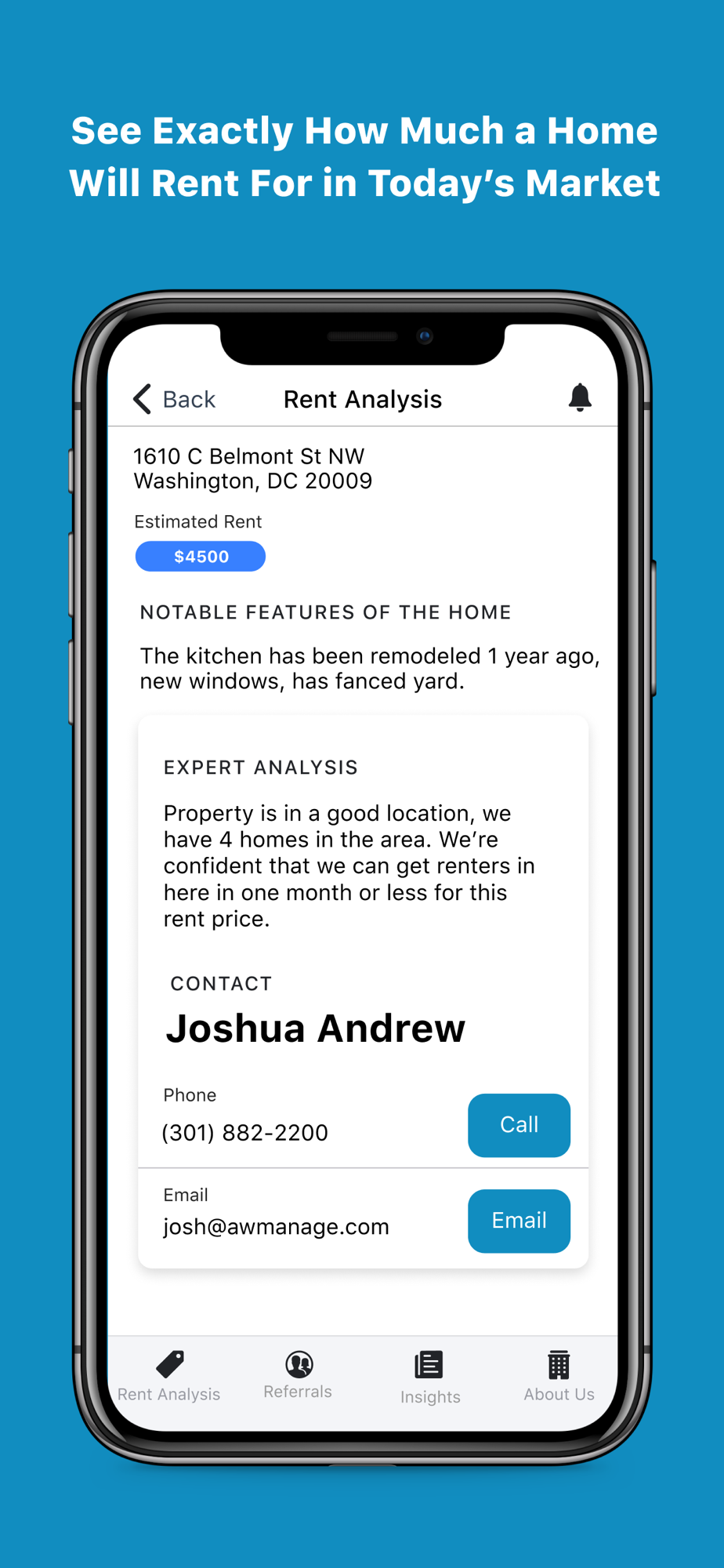 Grow your business, Stay informed and Work with Investors like a Pro! Get the information you need when you need it from a live AW Manage expert...Not a computer program. Now you can access fast and accurate rent comps, investment analysis and stay current on the most up-to-date laws affecting tenant occupied properties. Get the information you need when you need it. The AW Manage for Realtors app is a “must-have” app if you list or sell an investment property in the Washington DC or Montgomery County, Maryland area. With over 25 years experience top producing agents have partnered with AW Manage to take their business to the next level and you can too. We are the number one rated Property Management company in the Washington DC and Montgomery County, MD area. Get the AW Manage app, partner with AW Manage, and be a Pro!