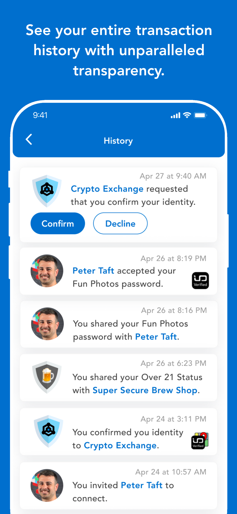 Peer-to-Peer – Online dating, online marketplaces, Buy Nothing groups, identity assurance for both sides of the transaction