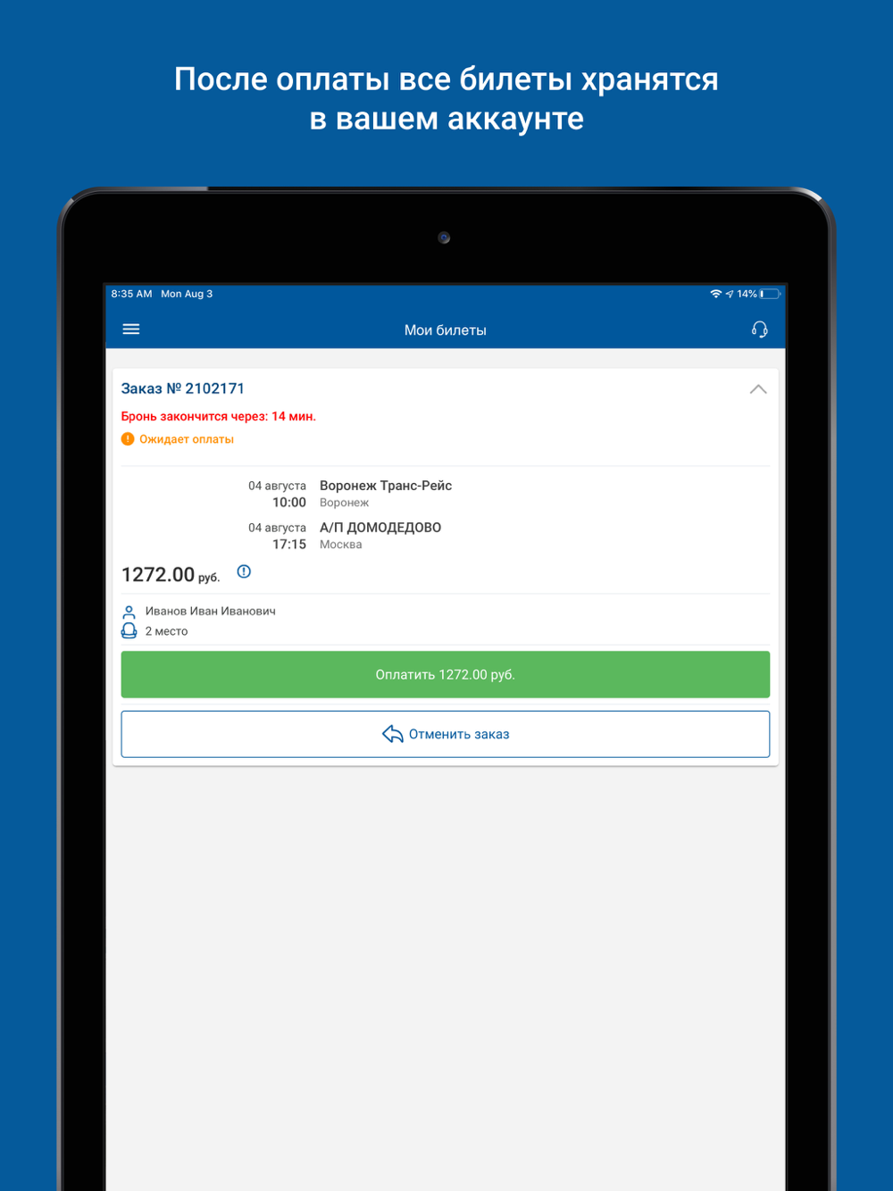 - бронирование автобусных билетов до момента оплаты