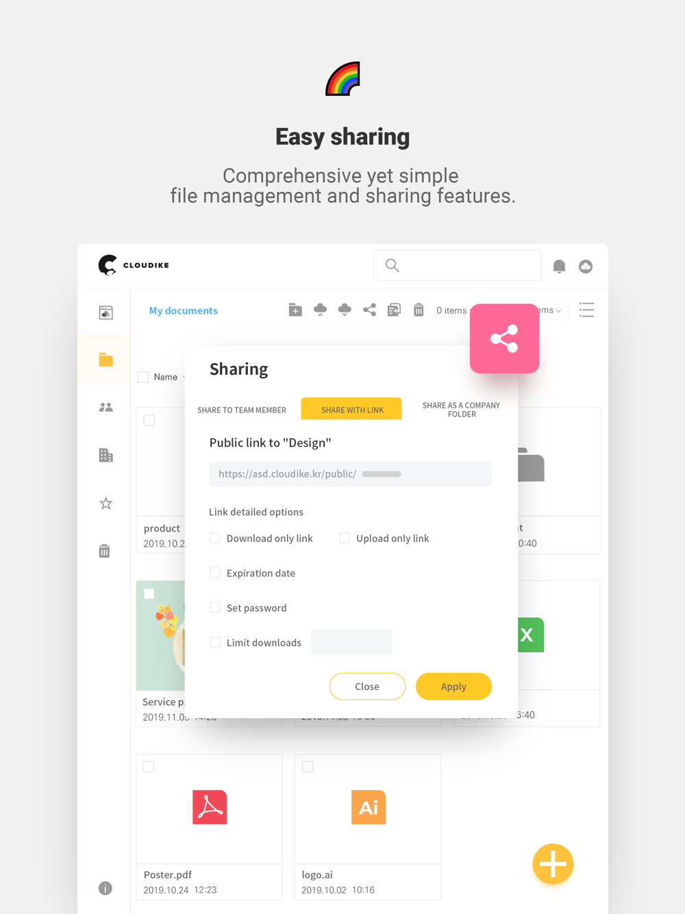 Cloudike is a cloud storage and file-sharing service designed for enterprise users. Manage your important data safely, anytime and anywhere, with easy file storage, synchronization, and sharing.