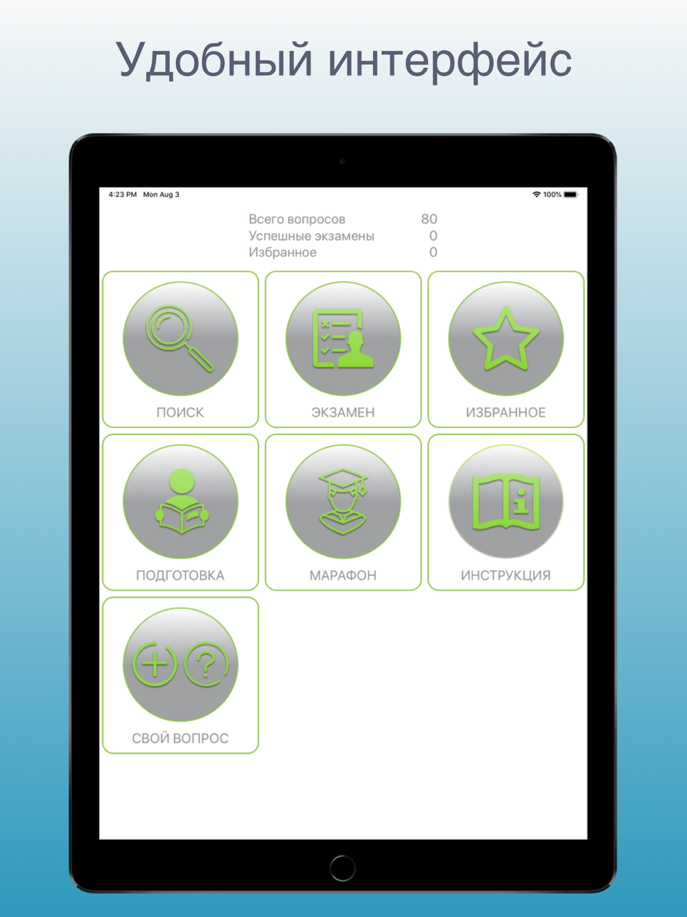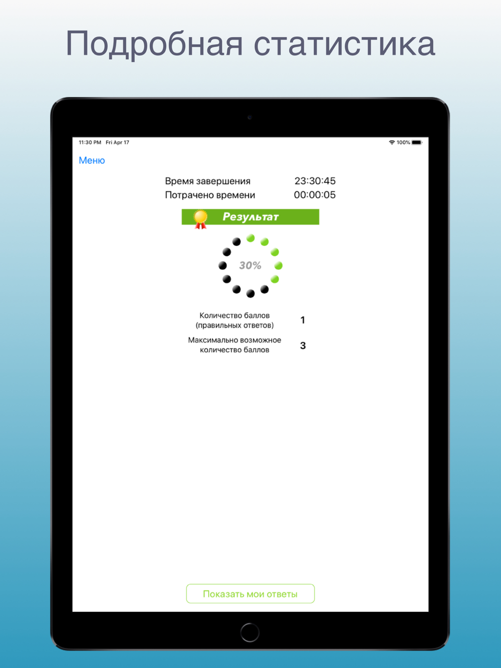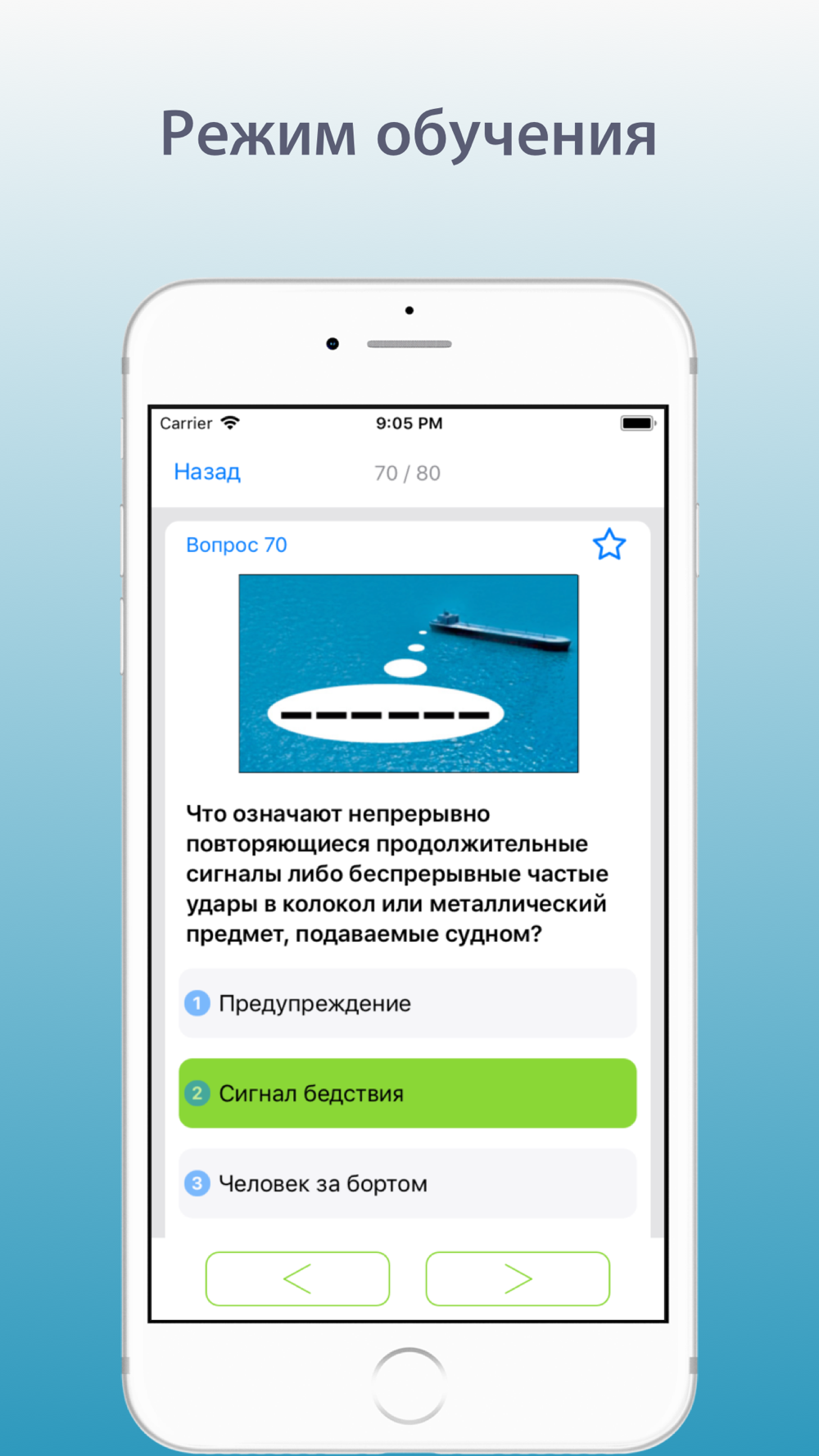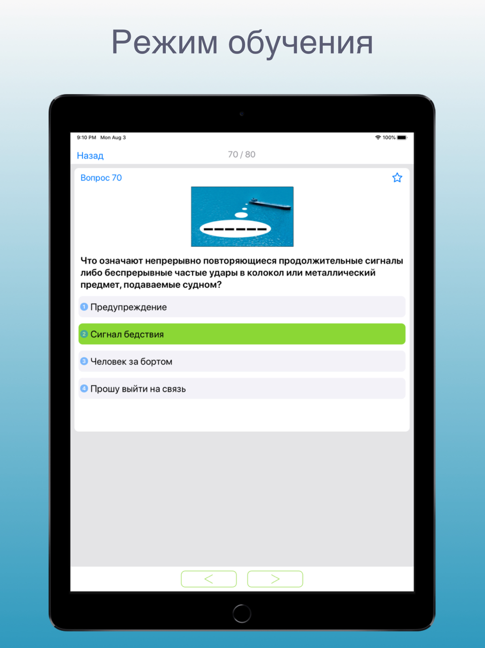 • Подготовка - Позволяет изучить вопросы в текстовом формате с отмеченными правильными ответами;