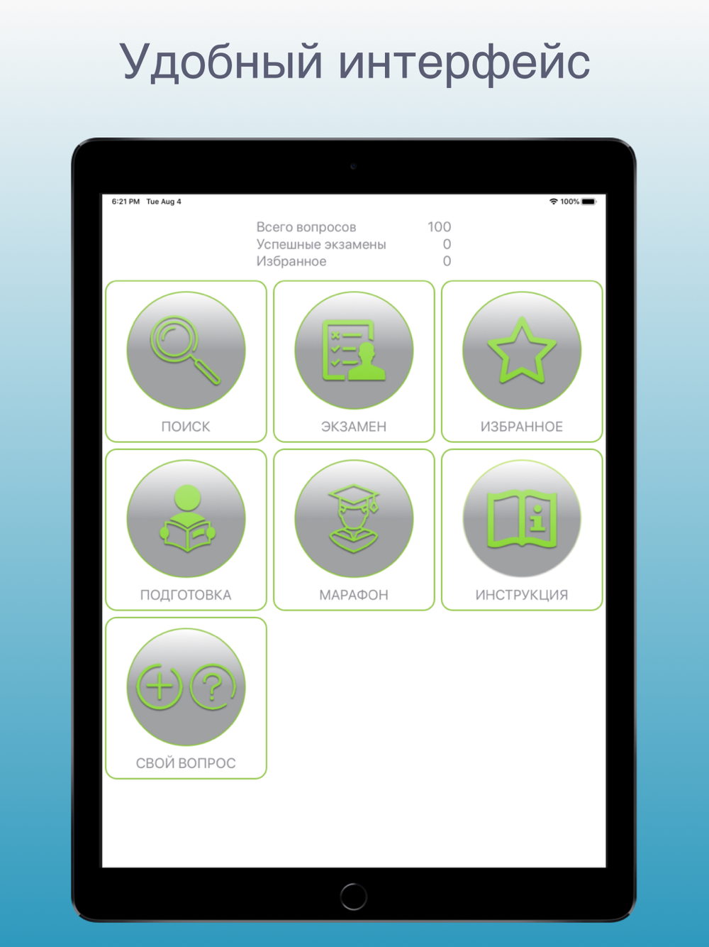 • Подготовка - Позволяет изучить вопросы в текстовом формате с отмеченными правильными ответами;