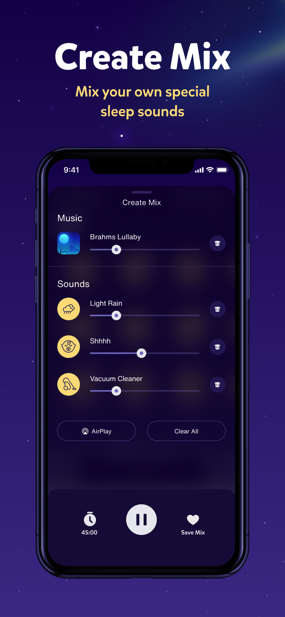 With AirPlay, you are in control of the sound. Keep the phone away from your baby by playing the sounds remotely. All you have to do is to prepare a calm environment for your baby and use this feature to put the sound on your speaker! Especially while travelling, you can make your journey more enjoyable for your baby by playing sleeping music on your car’s speaker.