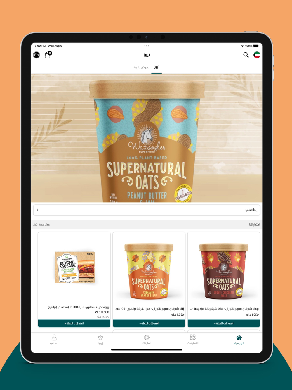 تطبيق تييرا متخصص في بيع جميع المنتجات النباتية، من منتجات الطعام والعناية الشخصية ومستلزمات المطبخ والصحة والجمال والعناية بالطفل والمكملات الغذائية وأغذية الحيوانات الأليفة ...وغيرها من المنتجات.