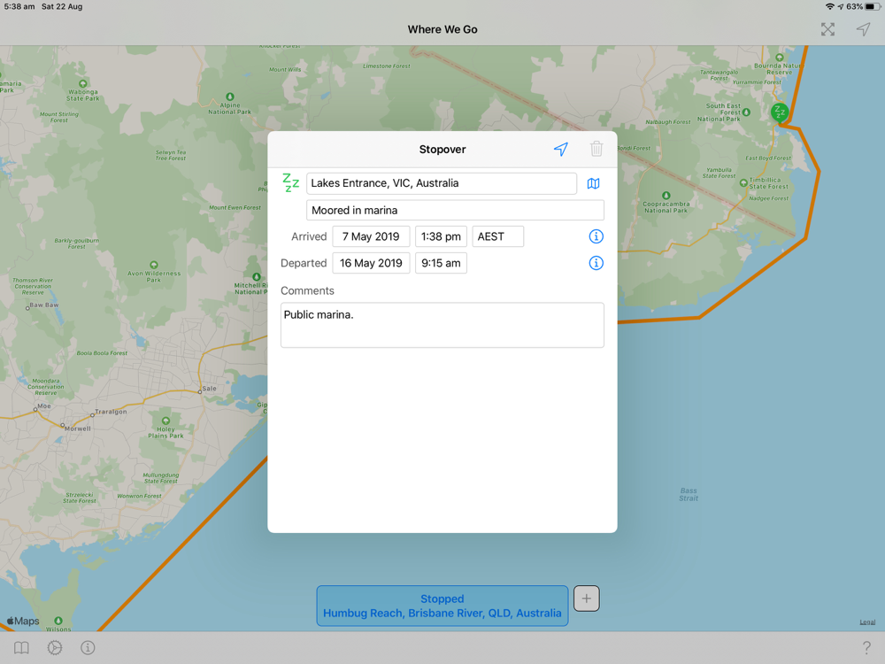 A map based travel log for documenting your travel. Useful for both land and water travels, this app records where you've been along with other important events along the way. It can be used simply as a travel diary, or as a more formal record, such as a ship's log book on private craft.