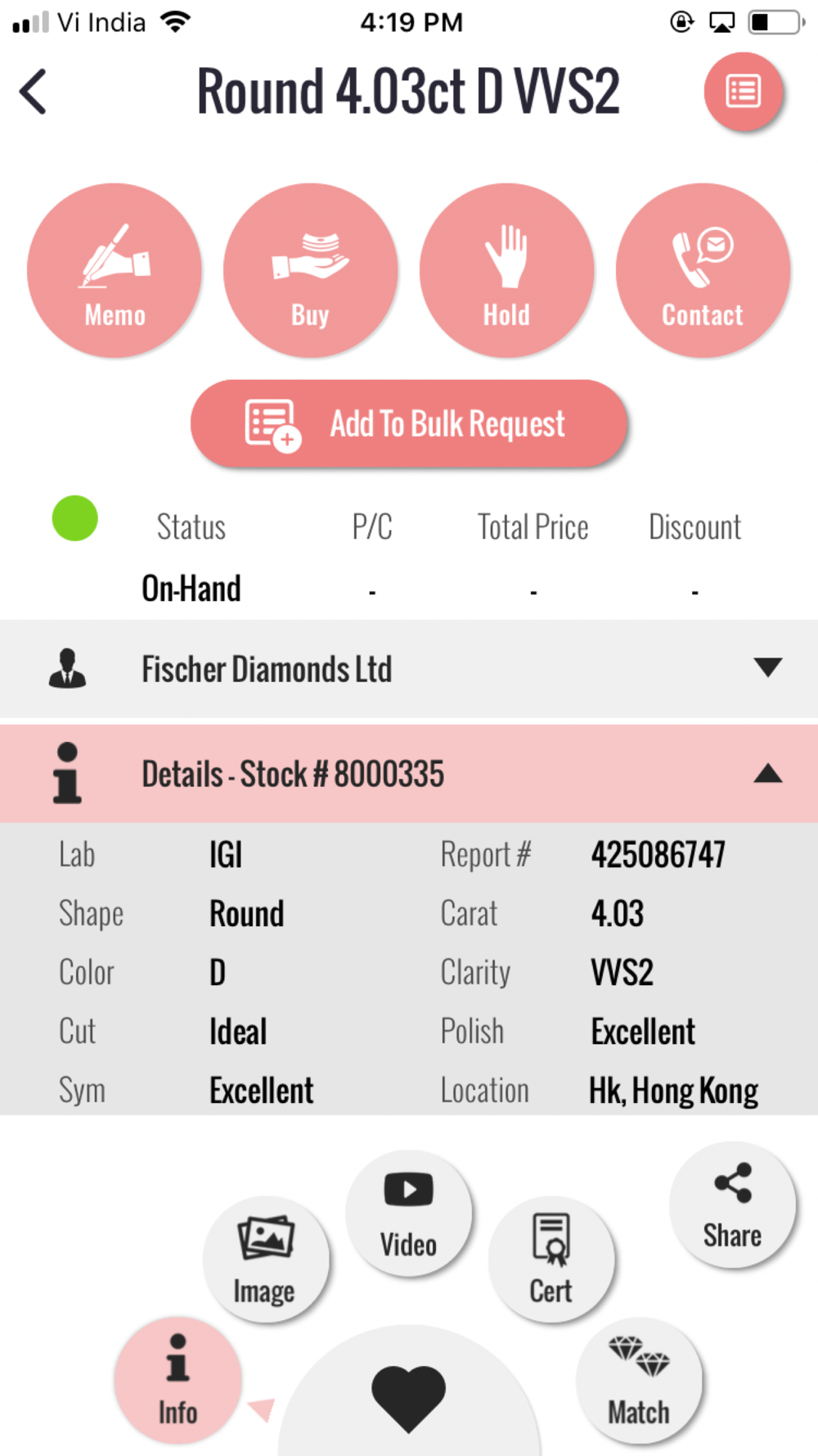 Using the Primo Diamonds Inc Lab Grown app willl give a retail jeweler access to our available diamond inventory from your mobile devices. Once approved as a u ser you will be able to search our inventory according to a diamonds criteria. By using the Primo Diamonds Inc app you will be able to submit a request to purchase, hold, or reserve one or more diamonds up to 4 8 h o u r s.