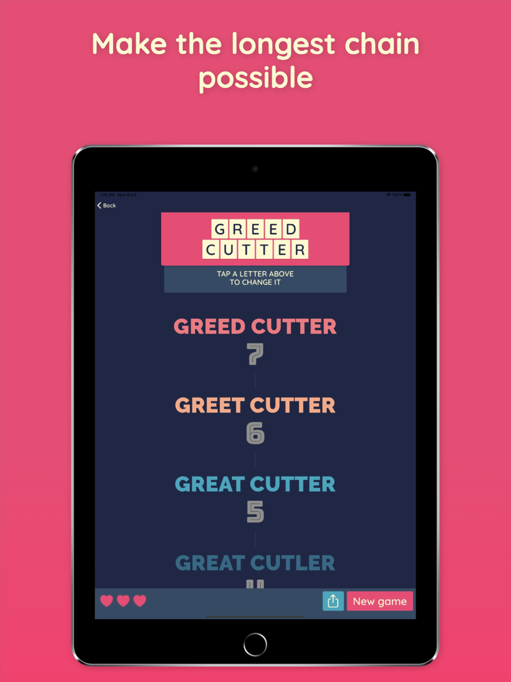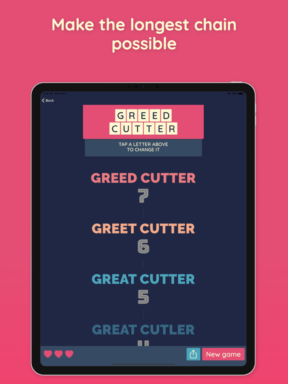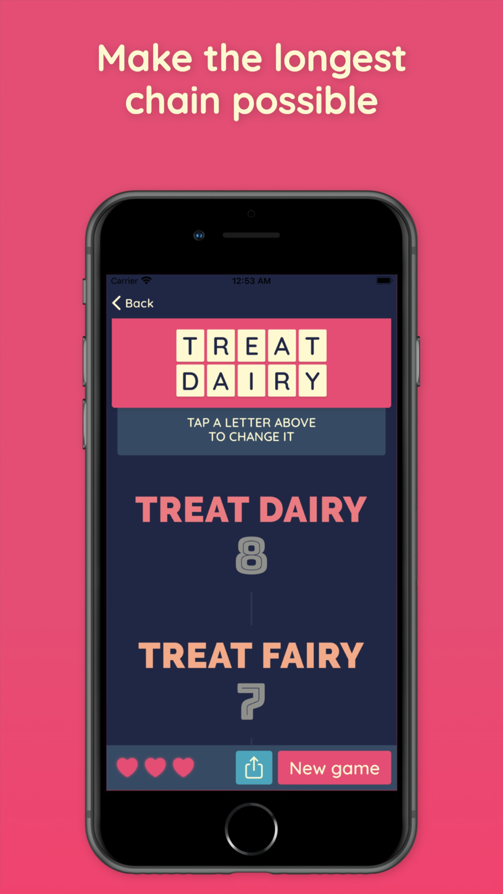 Invite your friends and get to the top of the leaderboard, with our new Daily Challenges mode! Everyone gets the same starting words, and you have to make the longest chain you can to beat everyone else.