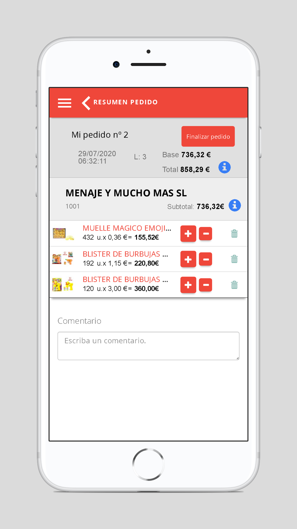Catálogo virtual de productos, puede realizar pedidos, modificarlos y enviarlos.