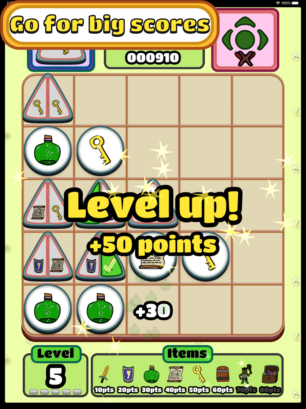 In Triapse, you combine the required items into the tri-counters to score and clear. The task gets progressively harder though as subsequent items are thrown into the mix, with the next move always down to you...