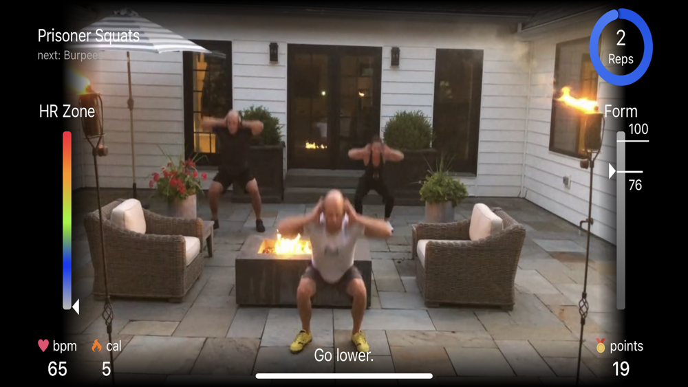 Alive™ recognizes and identifies your exercise movements, counts repetitions, analyzes form, provide real-time personal training feedback, and scores performance. Workouts are automatically logged to track progress. Dynamic leaderboards are available for each workout so you can compete with yourself and others.
