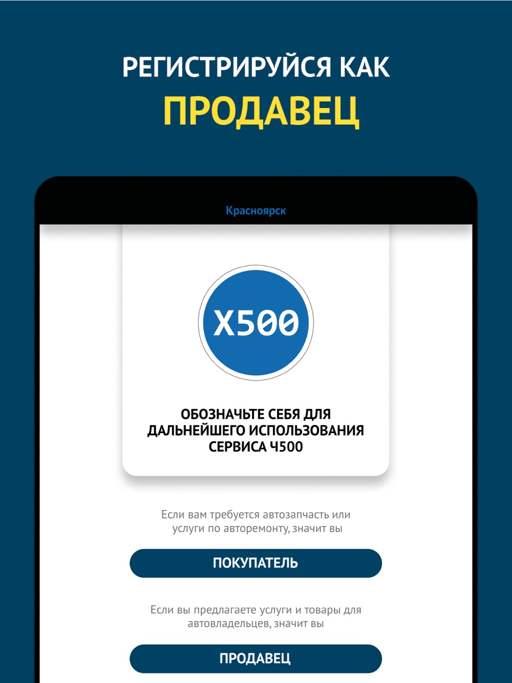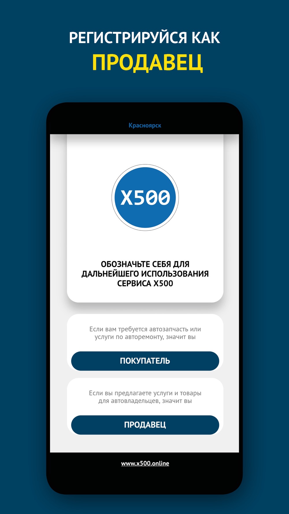 Статус пользователей условно поделен на две категории — "Покупатели" и "Продавцы". Покупателями выступают любые пользователи (автовладельцы), которым необходим товар или услуга для авторемонта. Продавцами выступают те, кто эти товары и услуги предлагает, а именно: представители магазинов автозапчастей, владельцы или менеджеры автосервисов, частные специалисты, компании по авторазборке и другие, — одним словом, все те, кто подключился к X500 через регистрацию. Сменить категорию можно в один клик в Личном кабинете, либо сразу при выборе статуса в начале использования приложения X500.