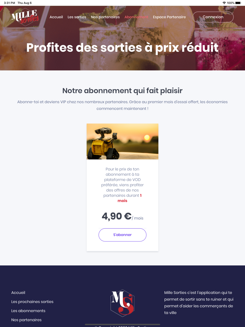 Mille Sorties c'est l'application qui te permet de sortir sans te ruiner et qui permet d'aider les commerçants de ta ville !
