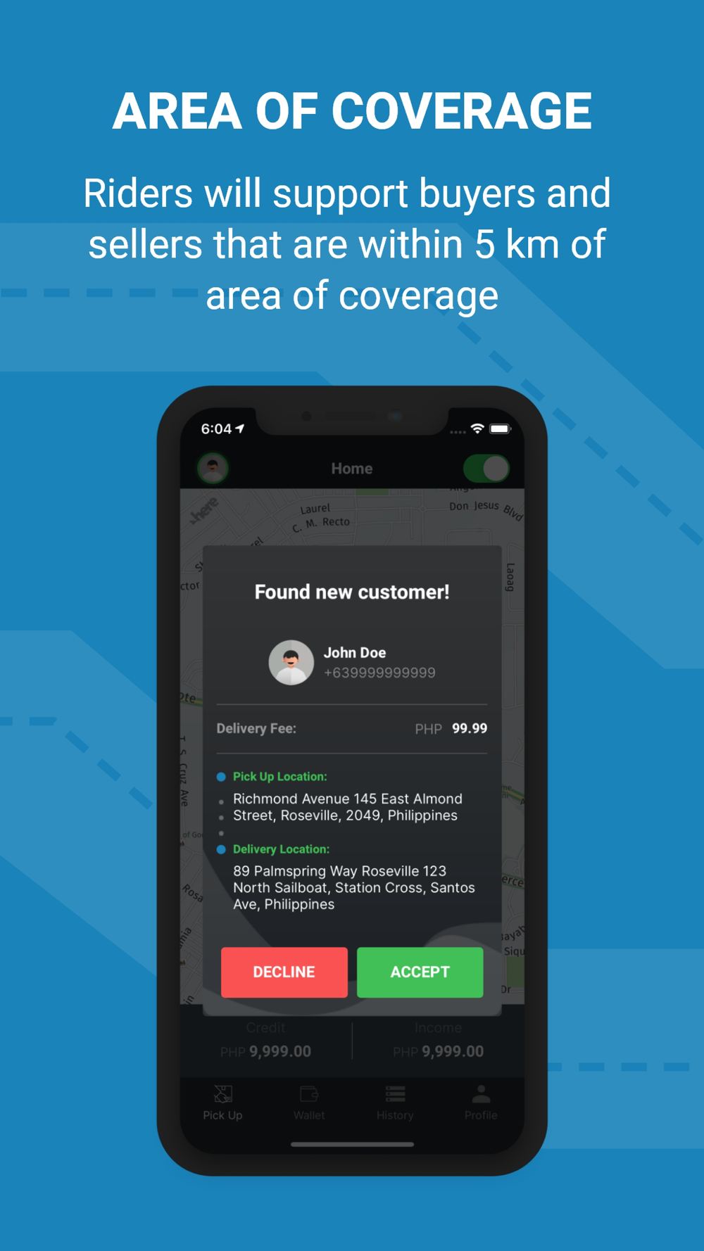 Riders will support buyers and sellers that are within 4 km of area of coverage