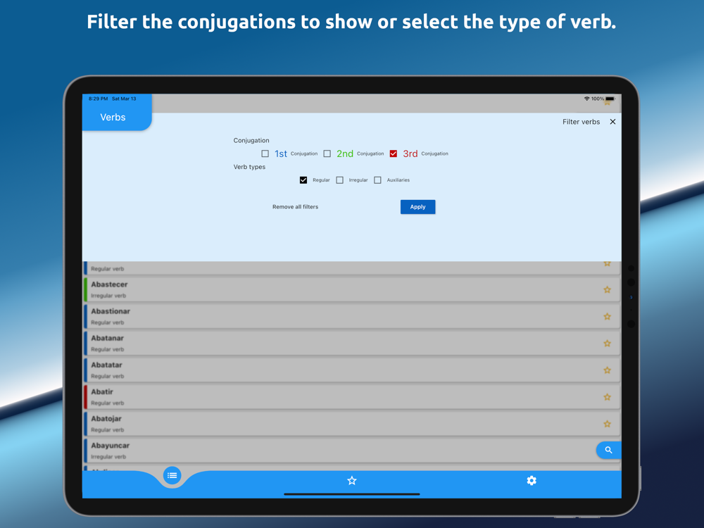 • Filter by type of verb