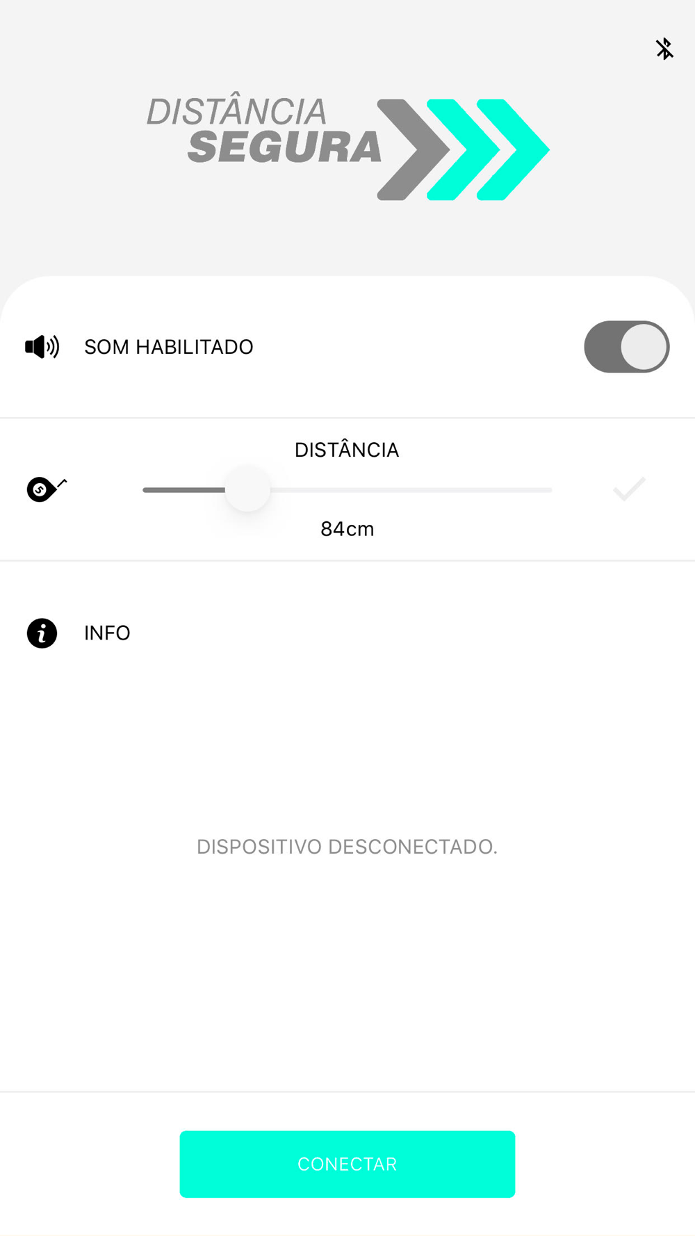 O aplicativo que o acompanha, permite alterar a distância mínima do disparo da sinalização entre 0,5m a 2m além de permitir ligar e desligar a sinalização sonora.