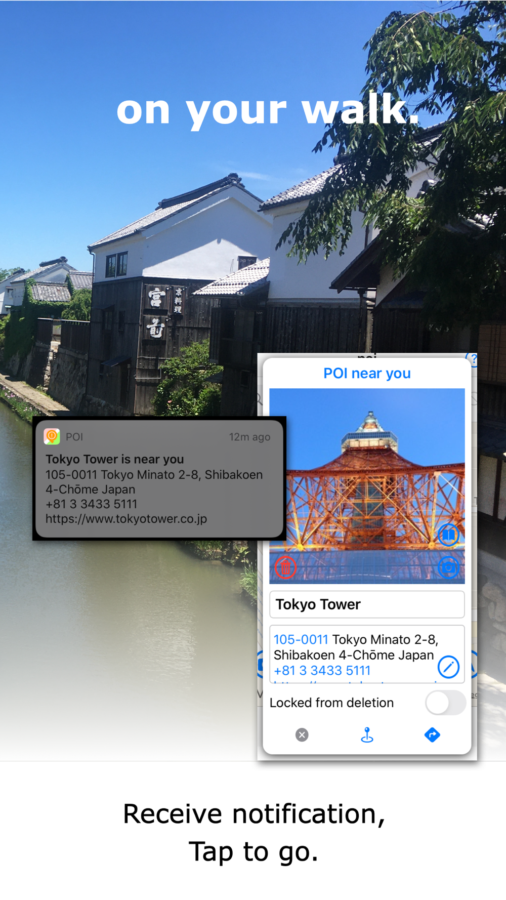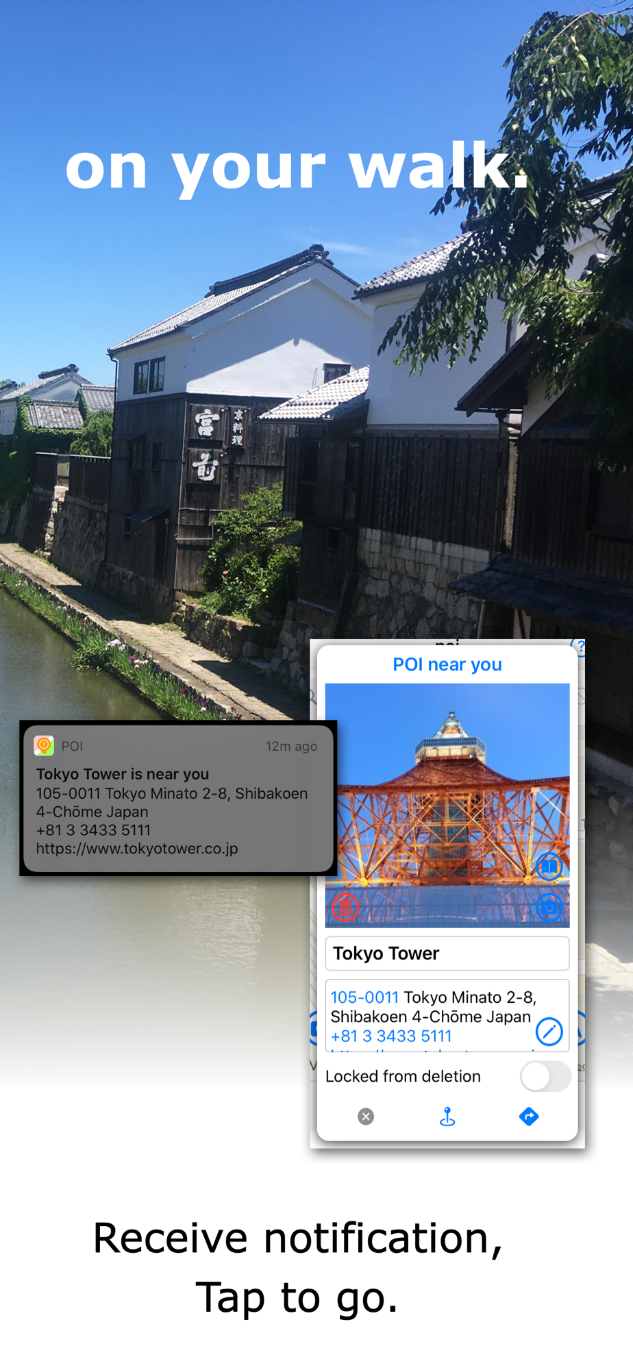 "Poi!" is an app that will notify you when you come near a place you are interested in (POI: Place Of Interest) registered in advance.