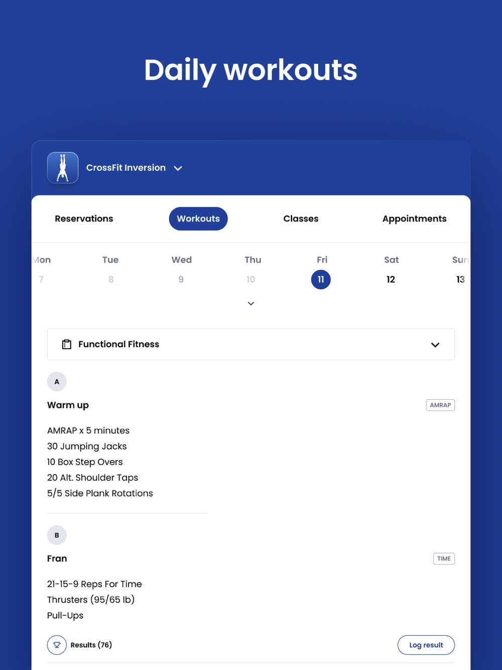 For members of CrossFit Inversion to reserve their place in a class, sign up for gym events, and general account management like updating headshots and credit card on file.