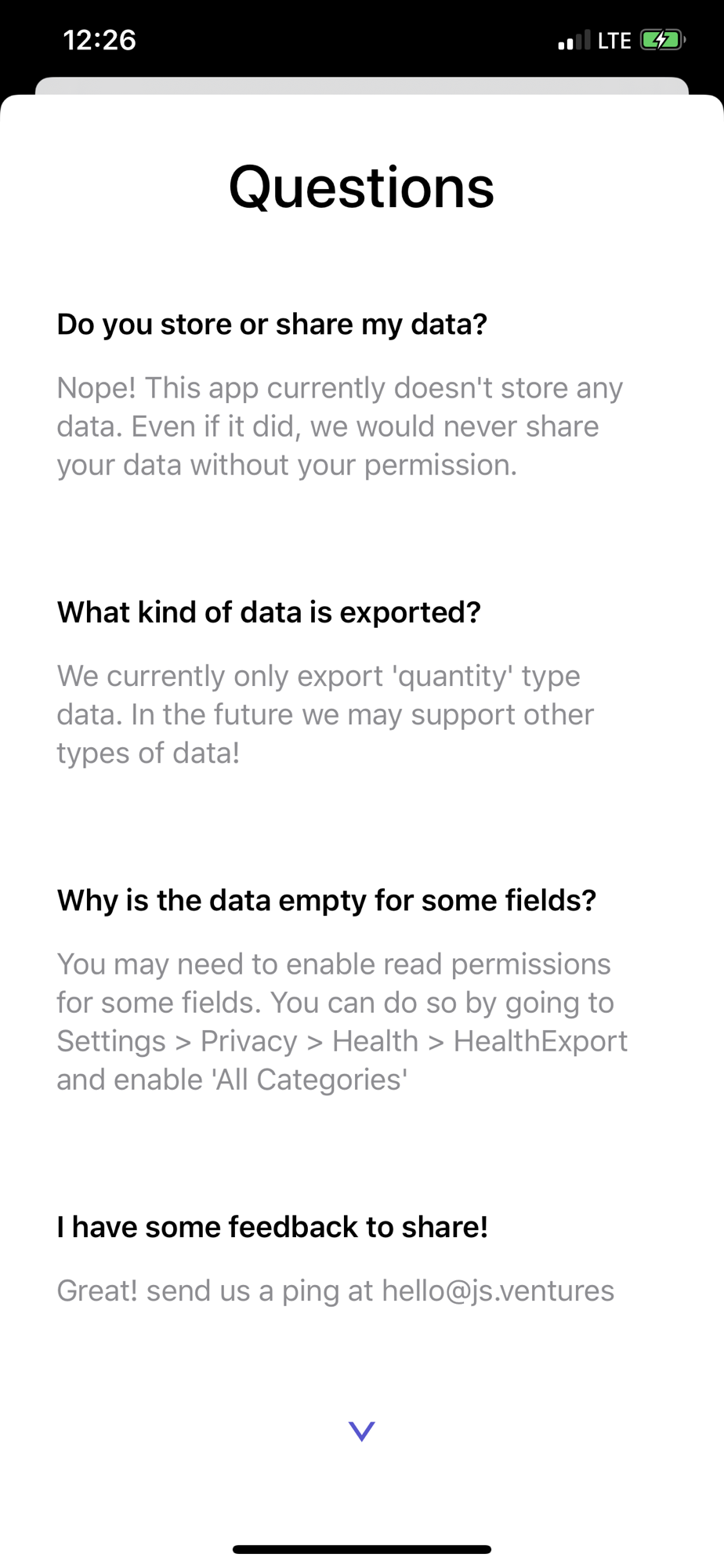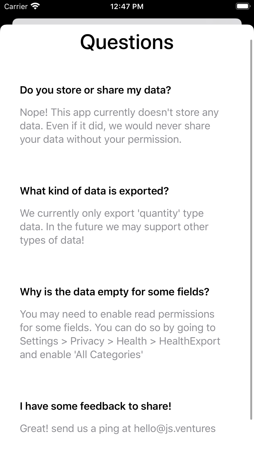 Export health is a simple utility for exporting your Apple Health data into CSV or JSON format. Use your data to do custom analysis in Excel or feed it into your own websites or programs.