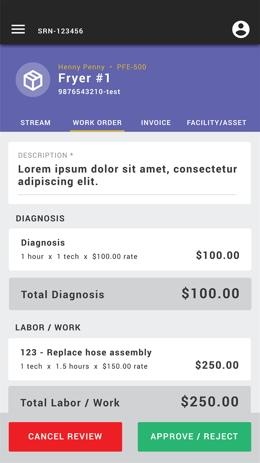 Log service requests in-app and navigate to the correct service channel based on warranty status. Record actions against assets in app, such as planned maintenance or service.