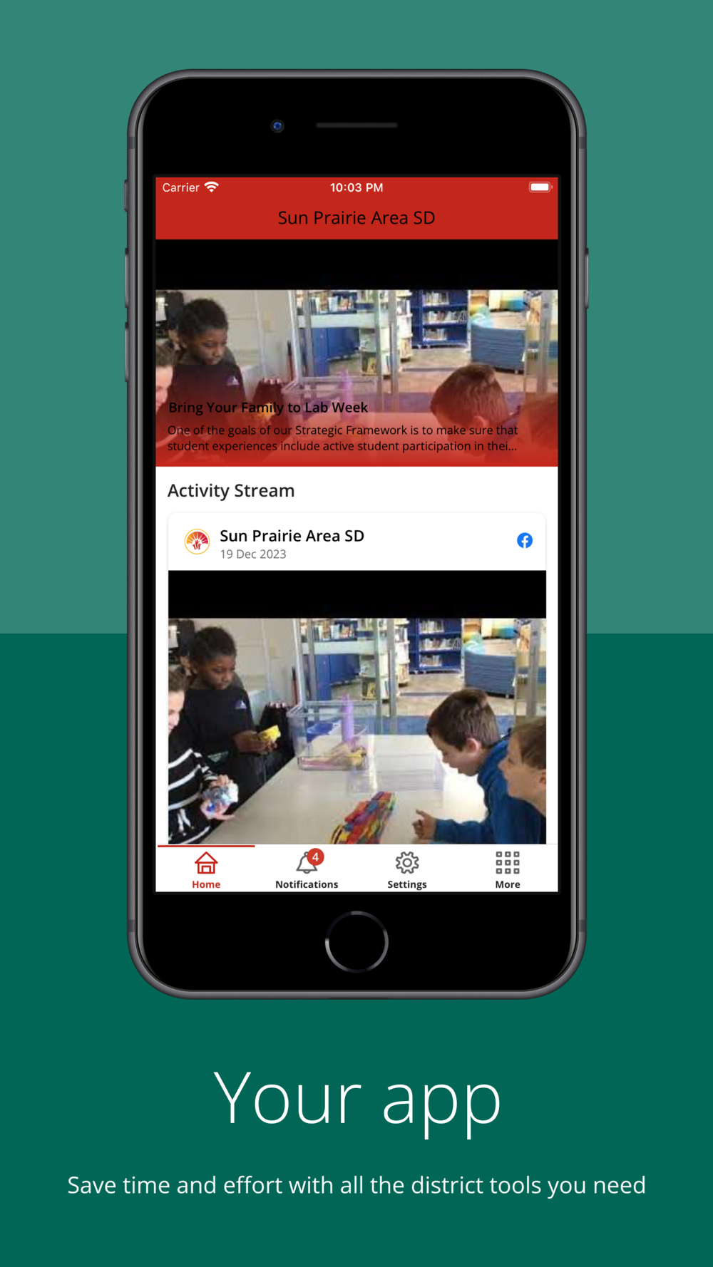 The official Sun Prairie Area SD app gives you a personalized window into what is happening at the district and schools. Get the news and information that you care about and get involved.