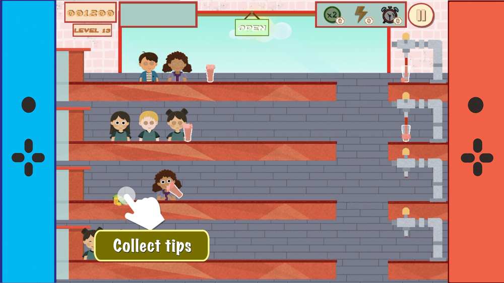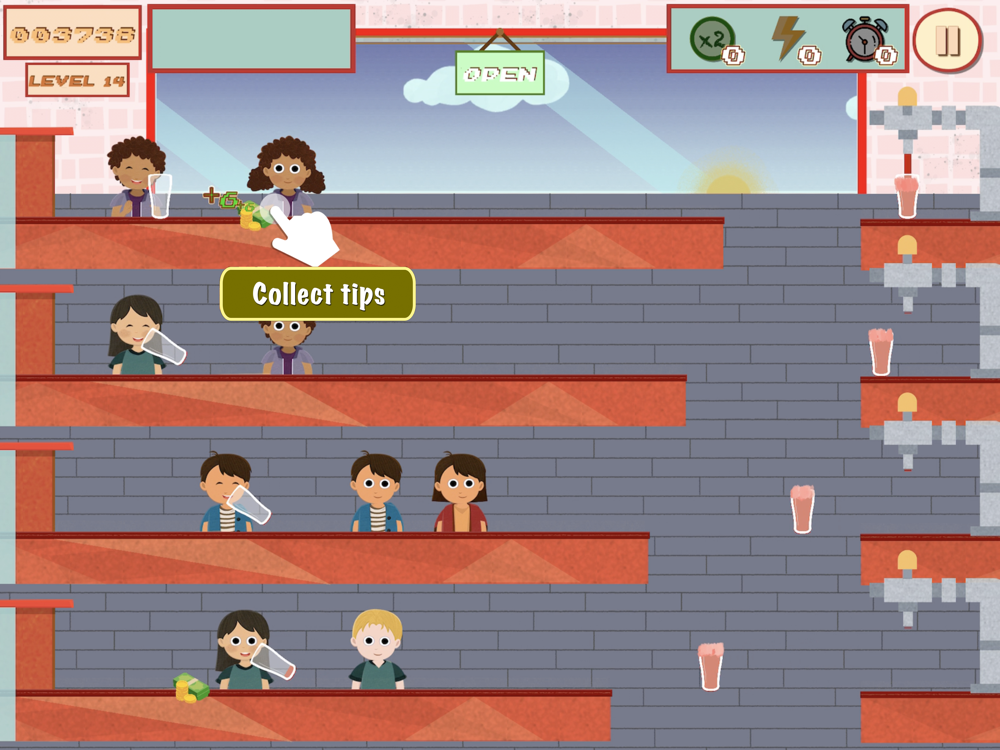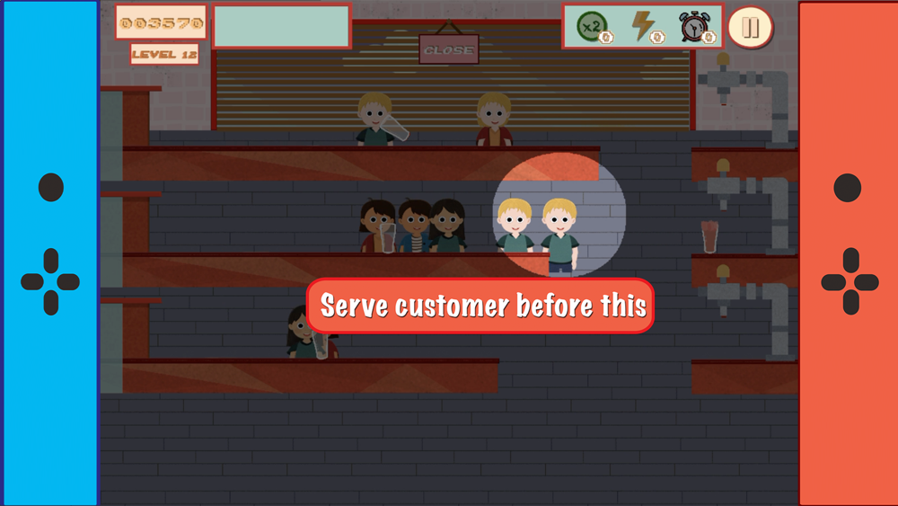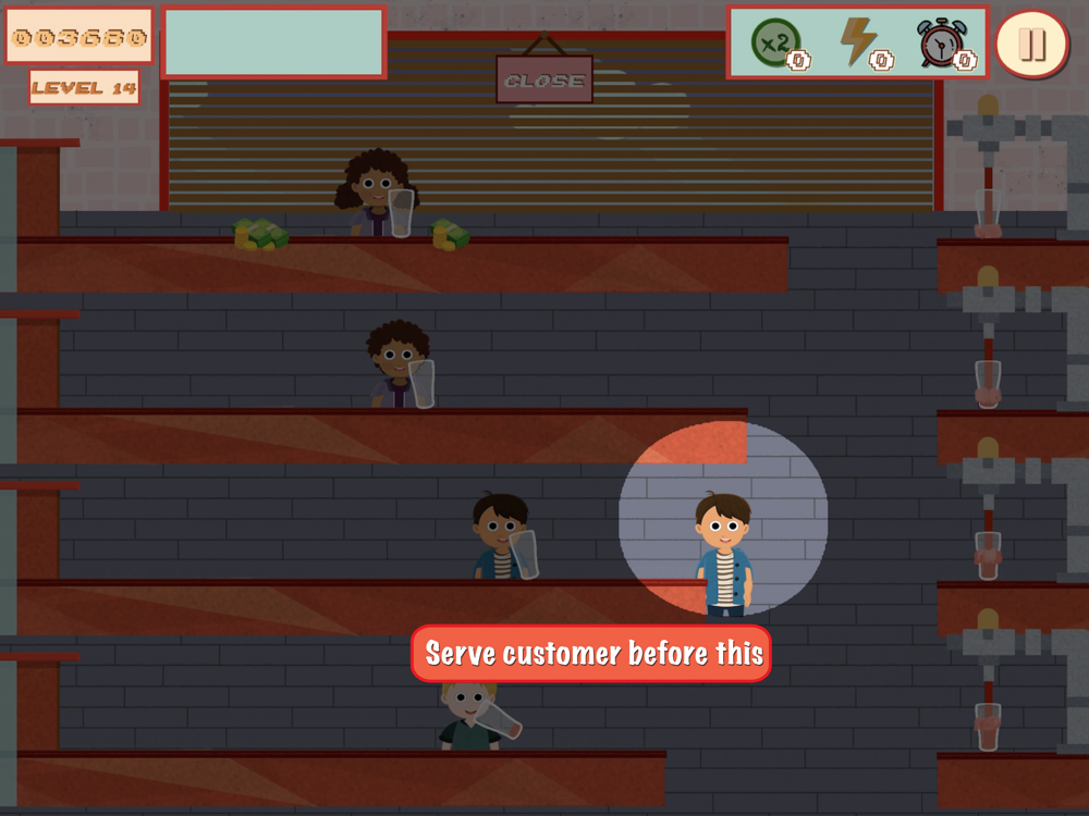 The game puts the player in the shoes of a bartender who must serve thirsty customers while collecting empty mugs and tips.