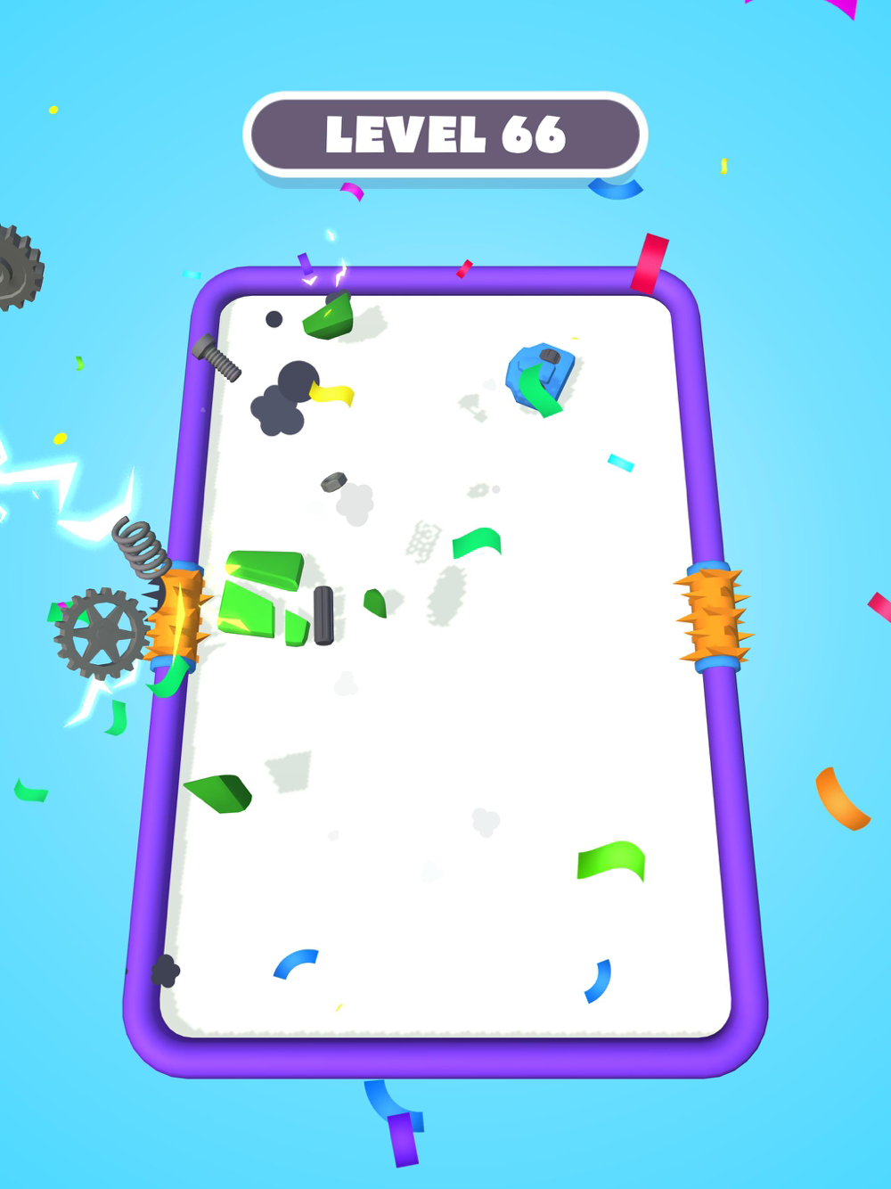 Do you trust your robot? Get ready for the epic battle! Throw your enemies at obstacles and smash them. Watch out! Don't be the one to be shattered.