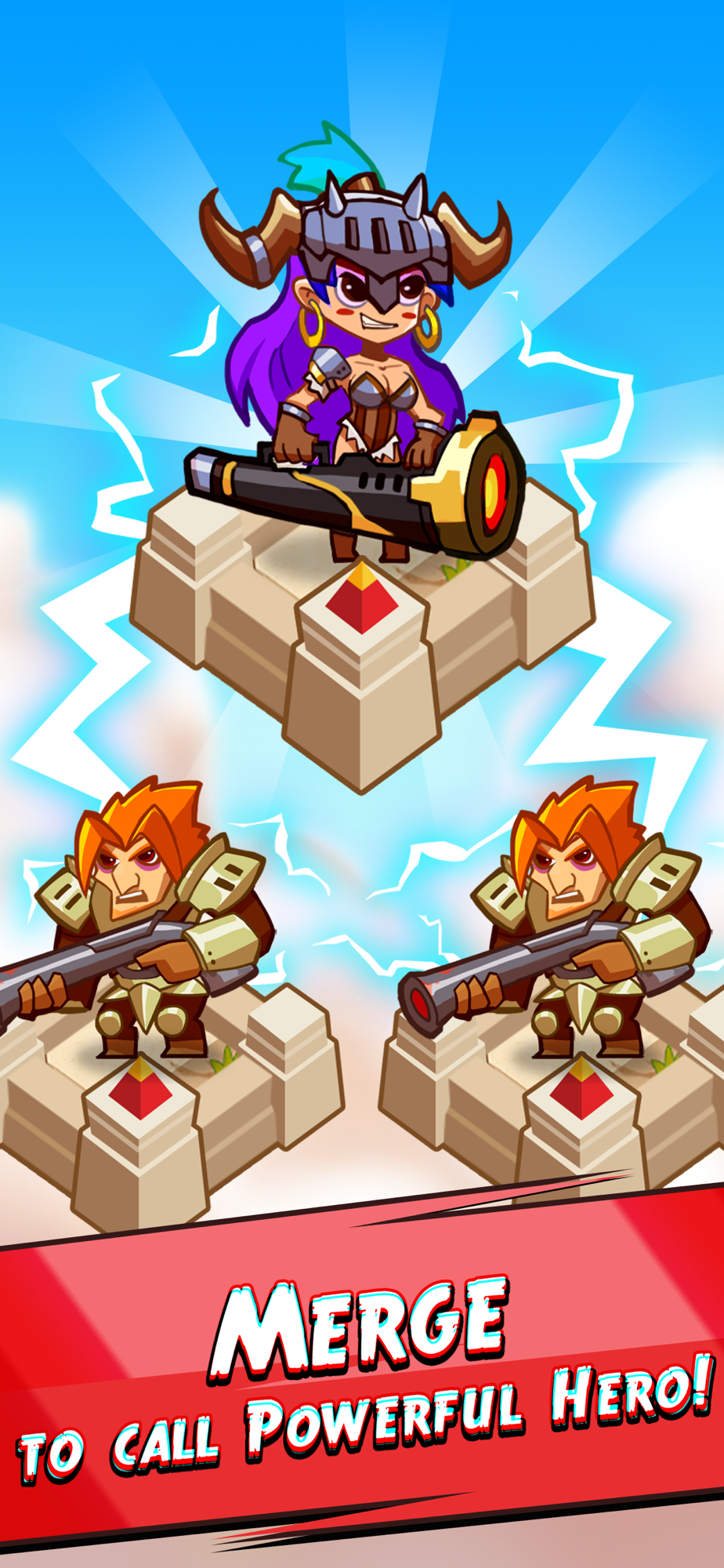 Merge and call powerful heros with various abilities to fight against the Zombie Kingdom!
