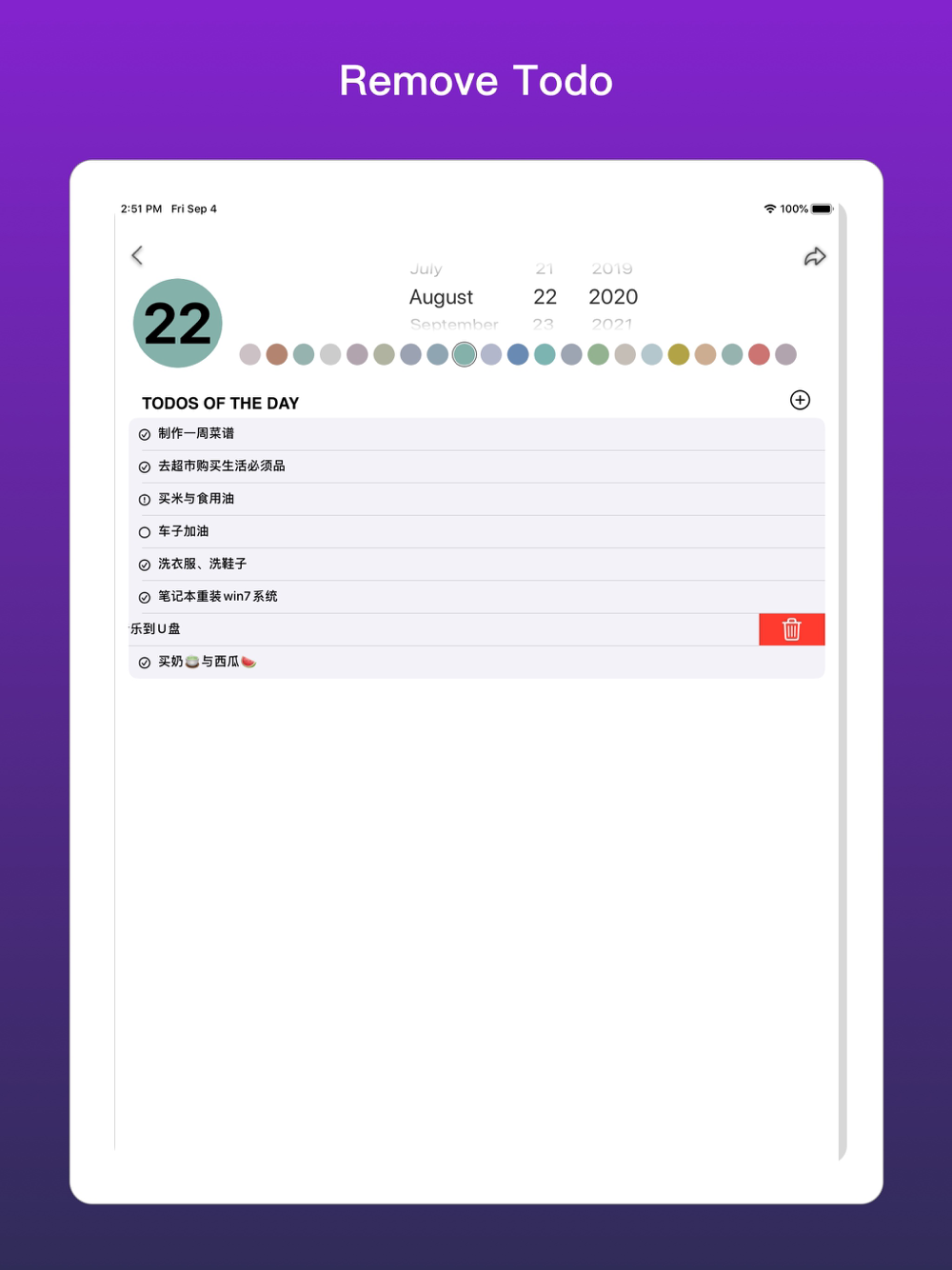 Todo calendar integrates calendar, note, memo reminder and list functions, which can help you improve work efficiency more effectively, let you work and life more orderly, and help you track and develop good personal habits.