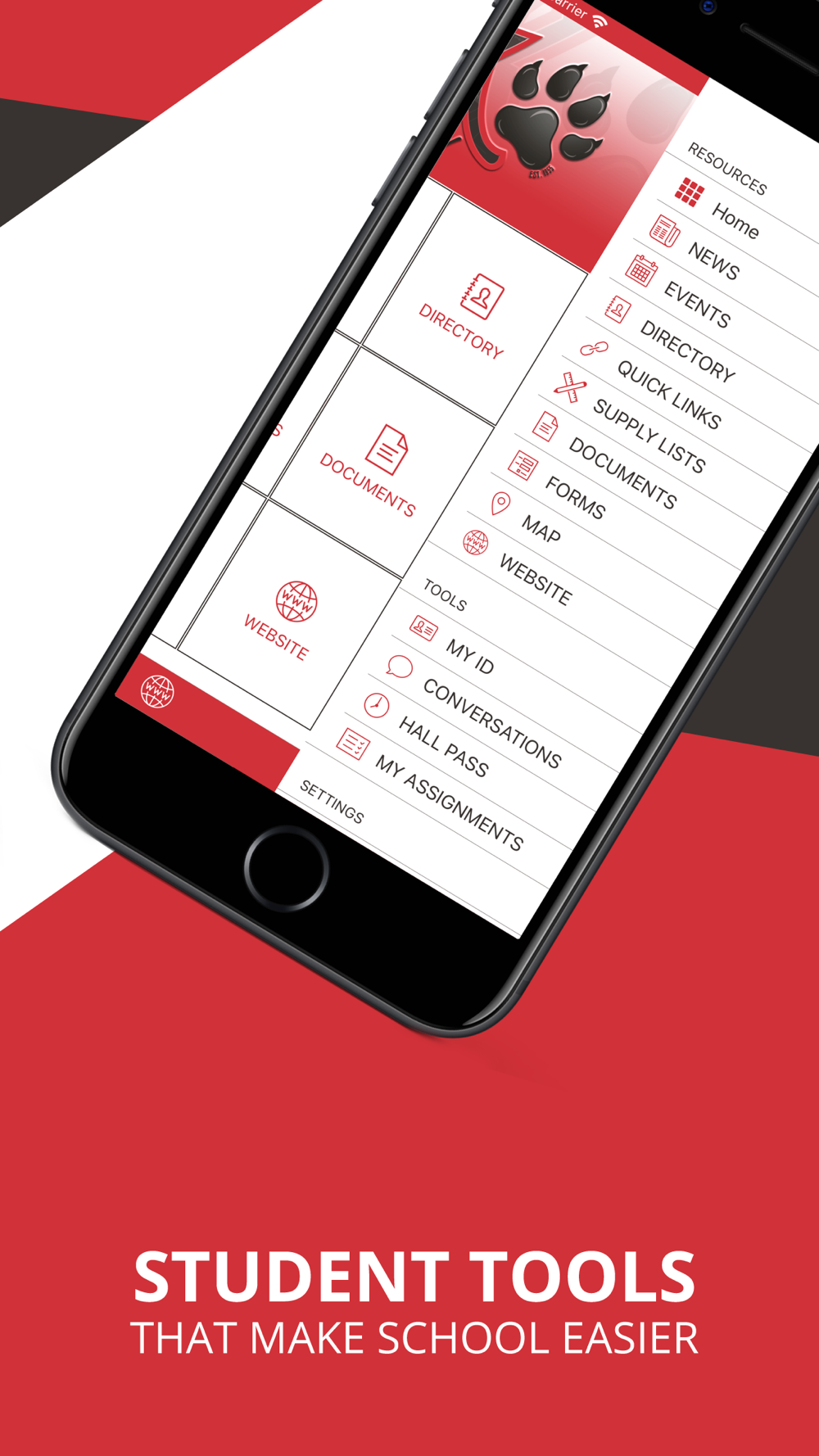 - Student tools including My ID, My Assignments, Hall Pass and Tip Line